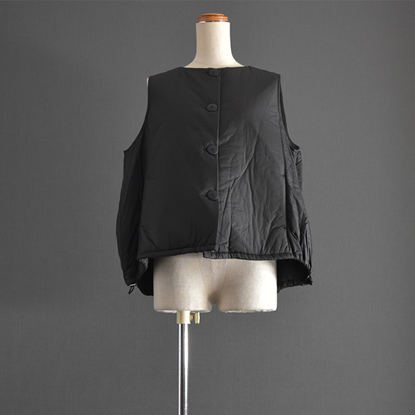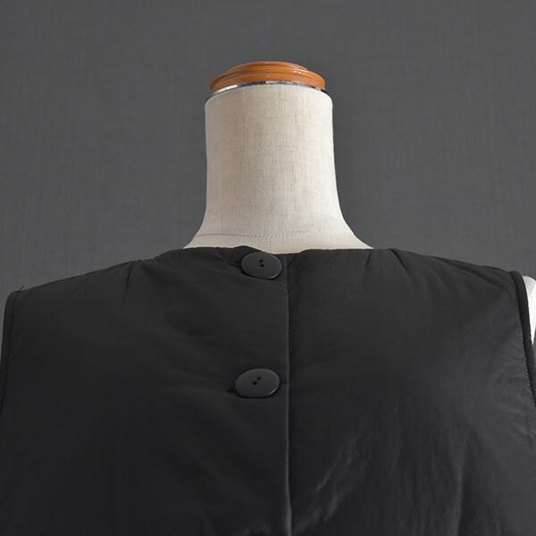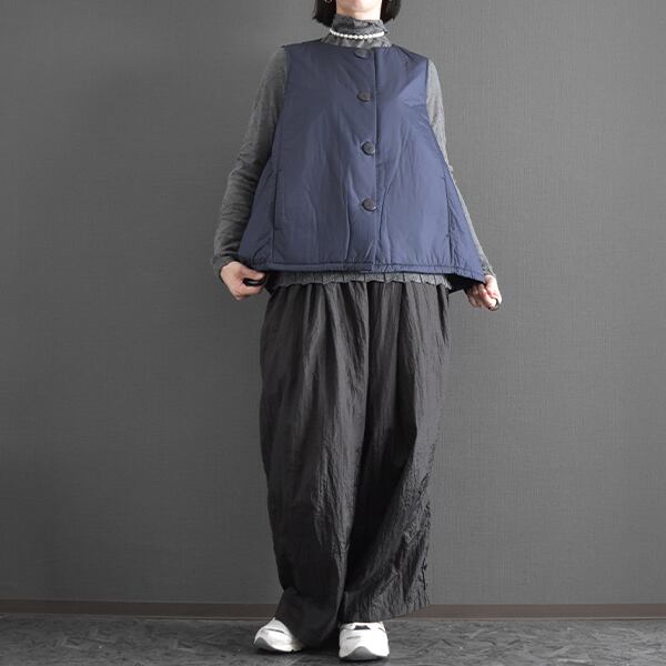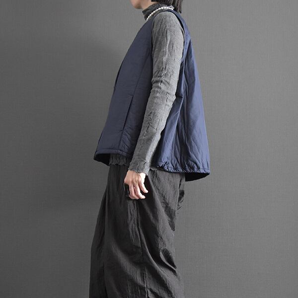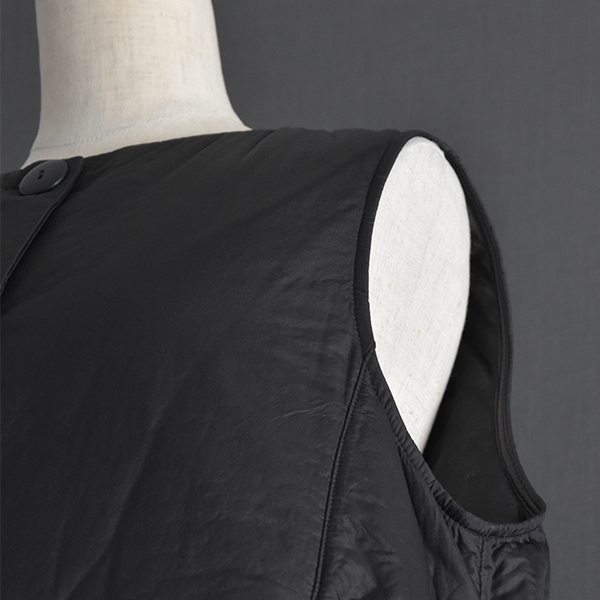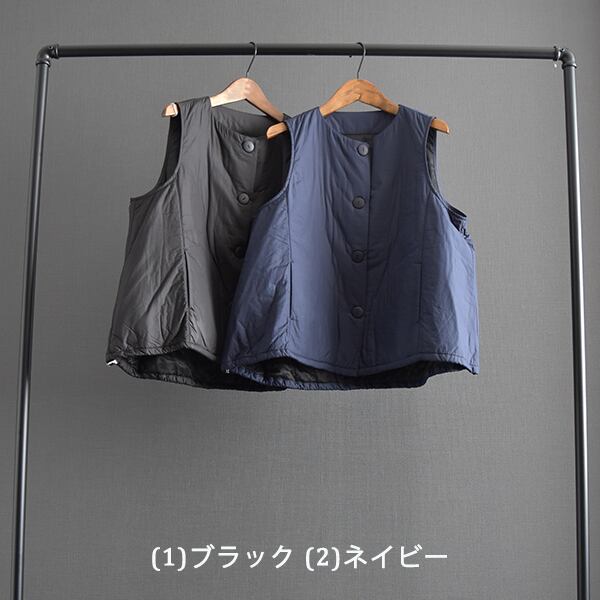薄手のワタ生地を挟んだ軽くて暖かいベストです。
