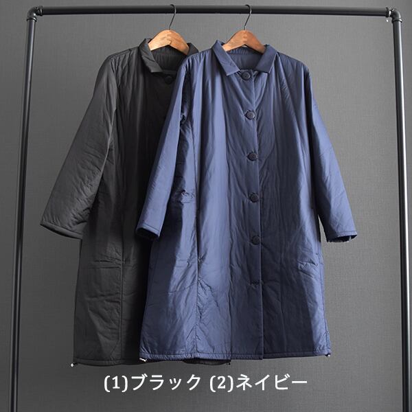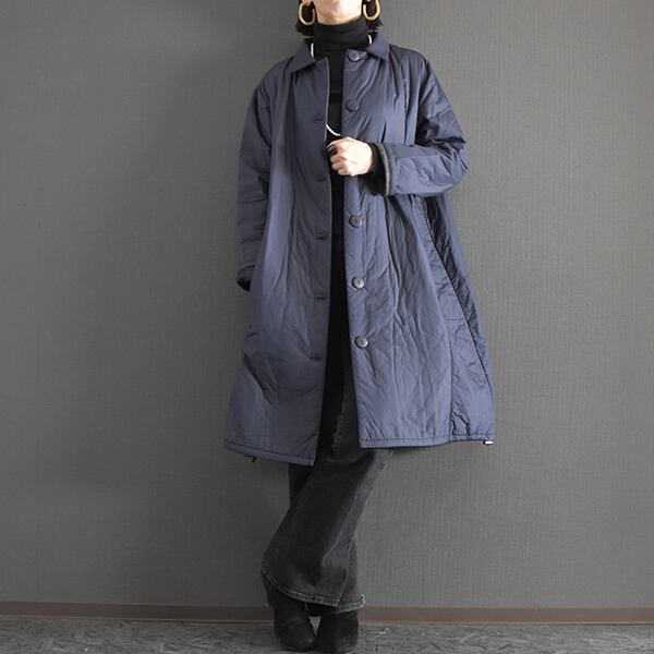 薄手のワタ生地を挟んだ軽くて暖かいコートです。