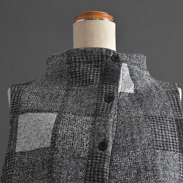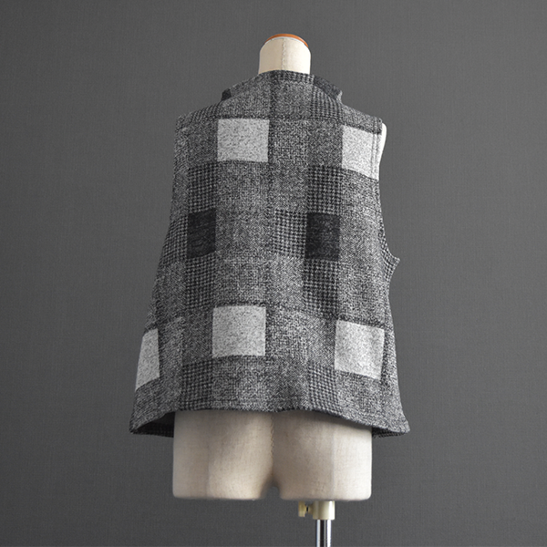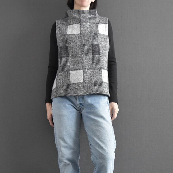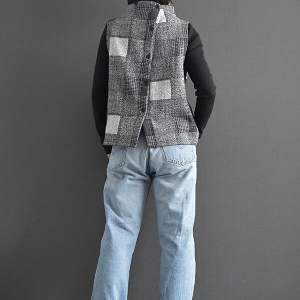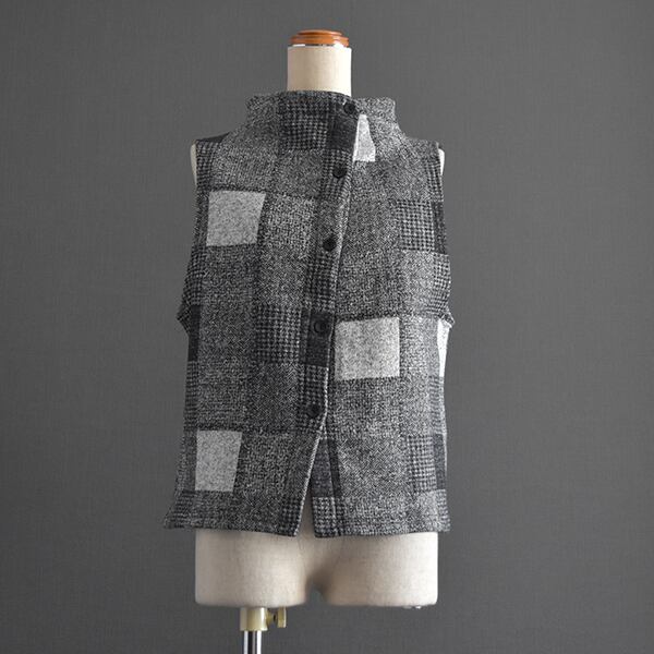 とても暖かい裏起毛生地を使用したベストです。前後両面着ていただける2WAYタイプです。ボタン側はあえて斜めに。