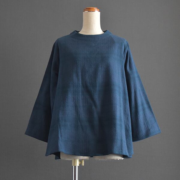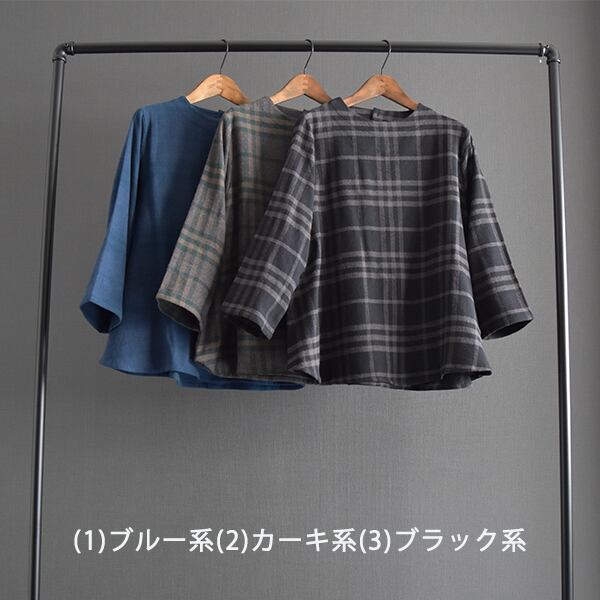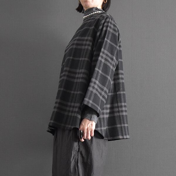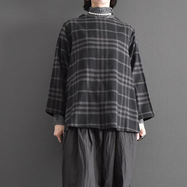 落ち着いたカラーリングの起毛チェックブラウスです。
