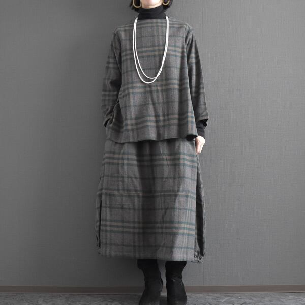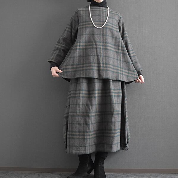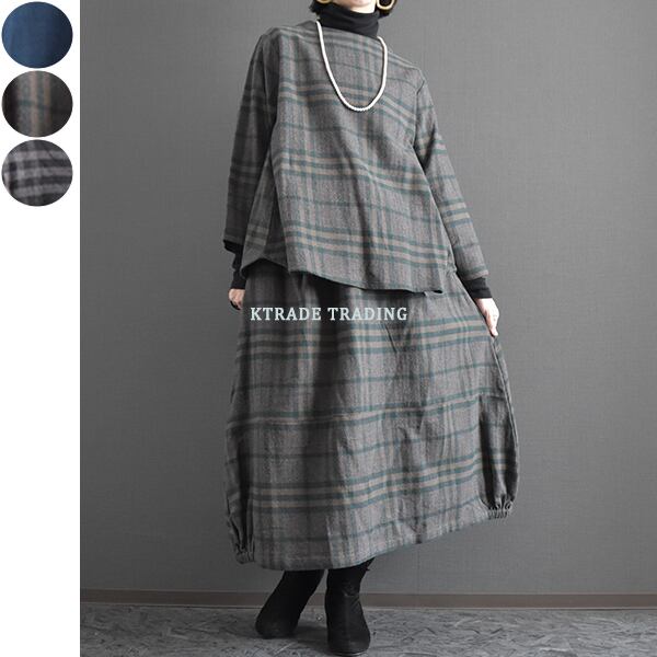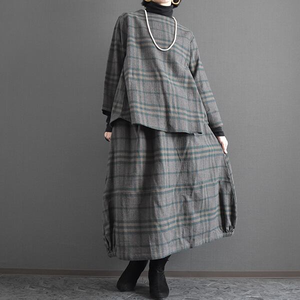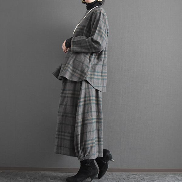 セットアップ可能 起毛コットンチェックブラウス 2025秋冬