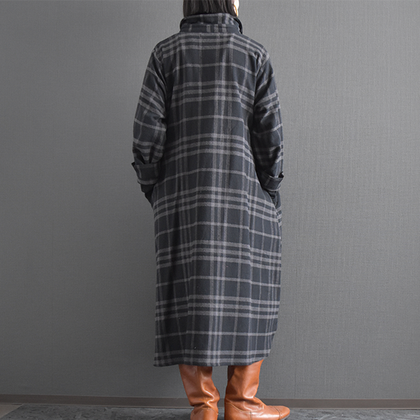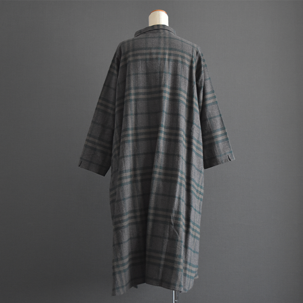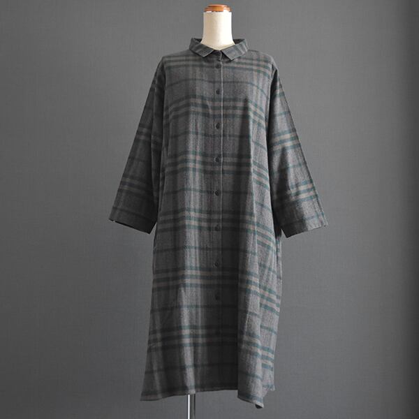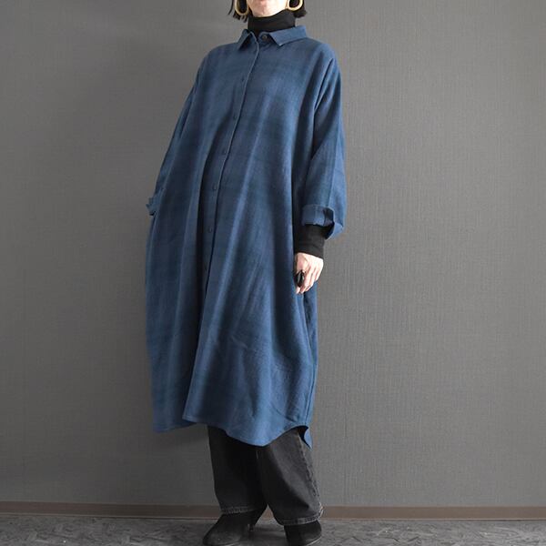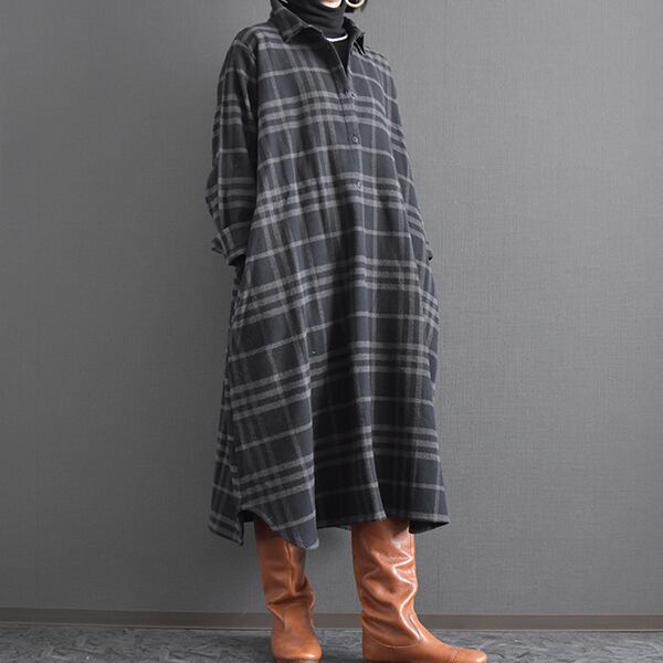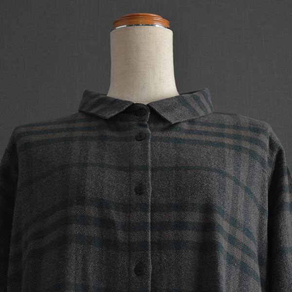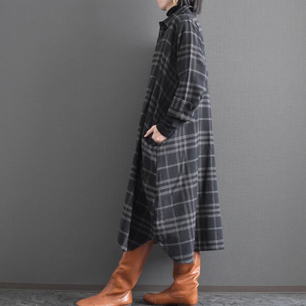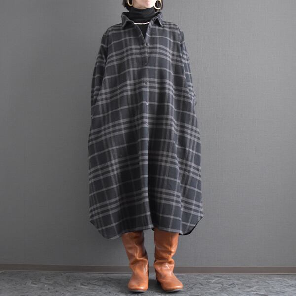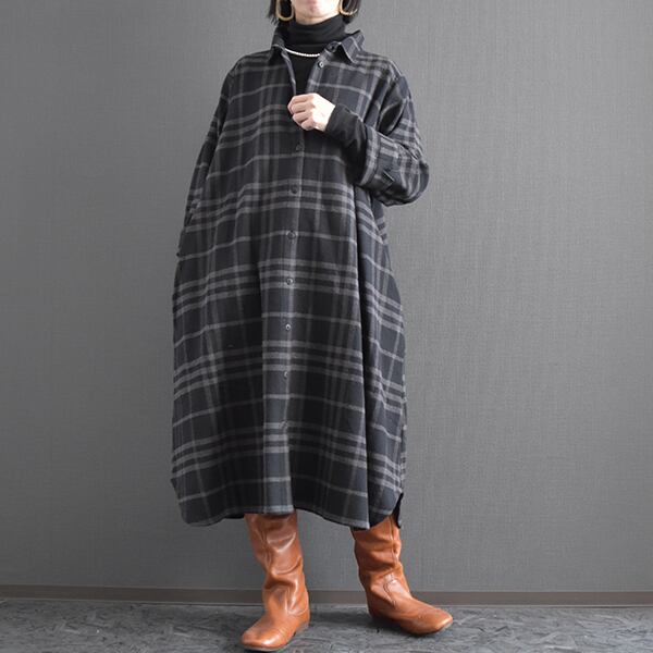 落ち着いたカラーリングの起毛チェックシャツワンピースです。