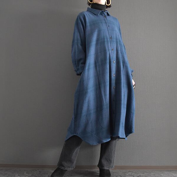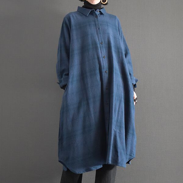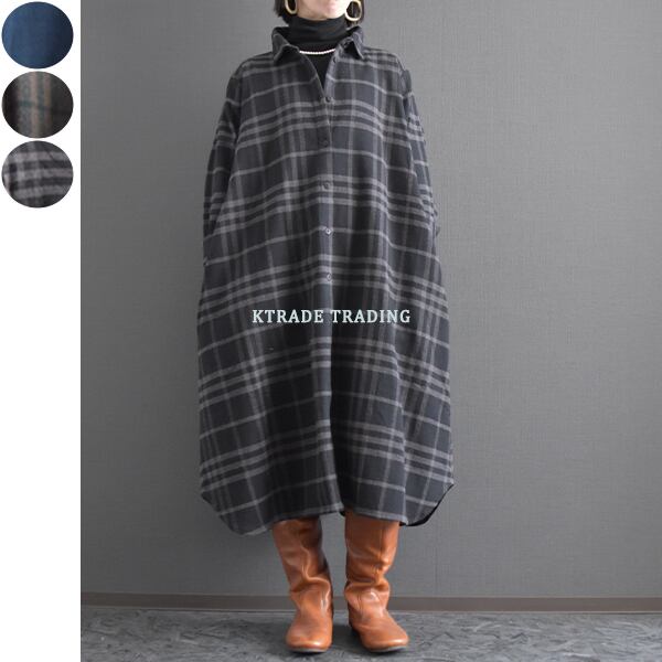 起毛コットンチェック前開きシャツワンピース 2025秋冬