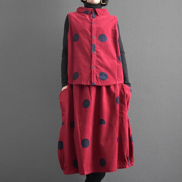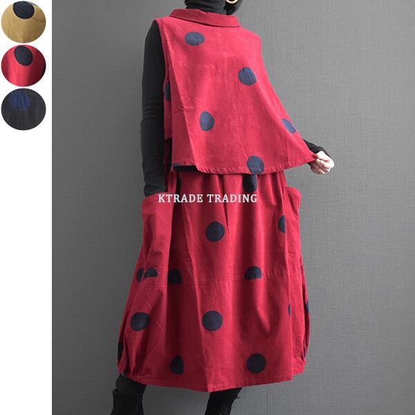 セットアップ可能 綿コーデュロイドットプリント2WAYベスト 2025秋冬