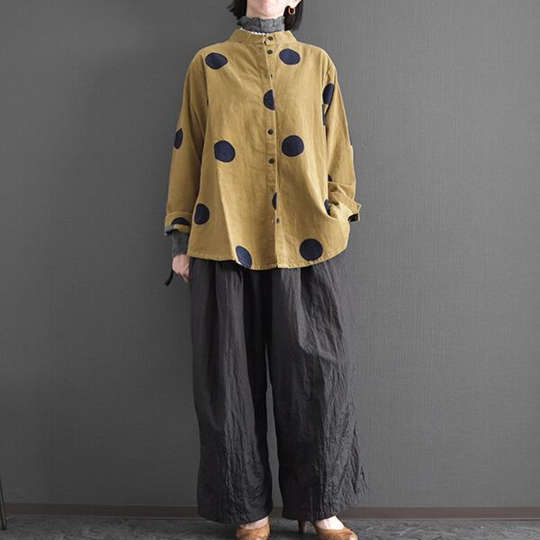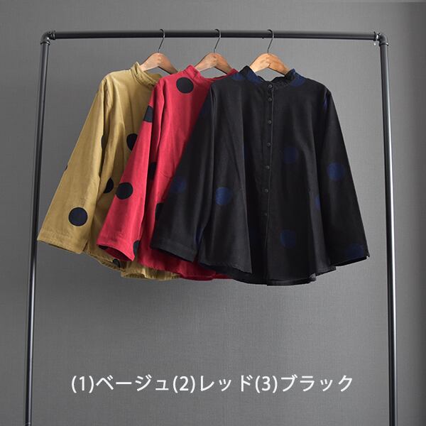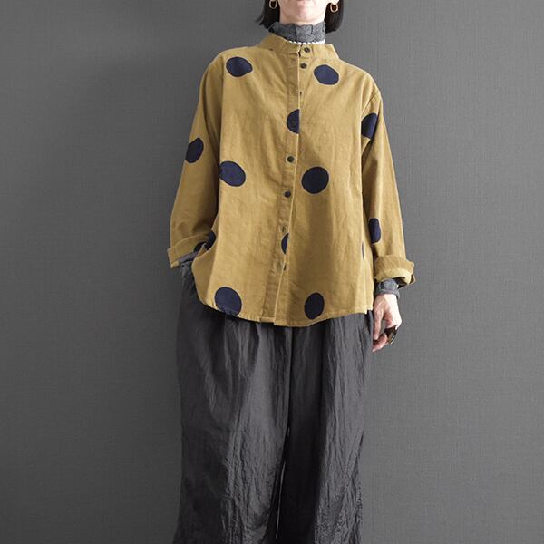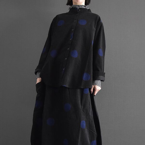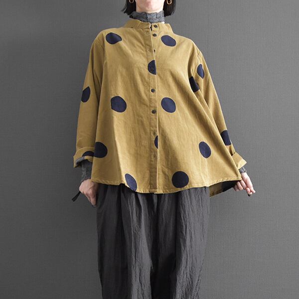 綿コーデュロイドットプリント前開きブラウス 2025秋冬