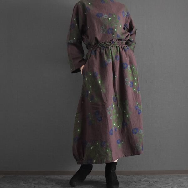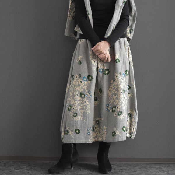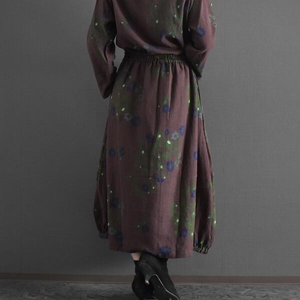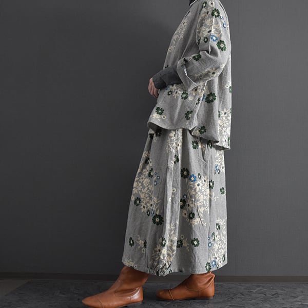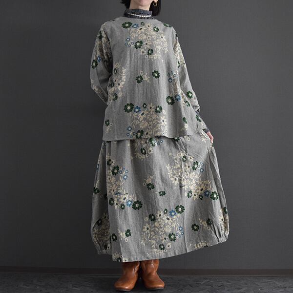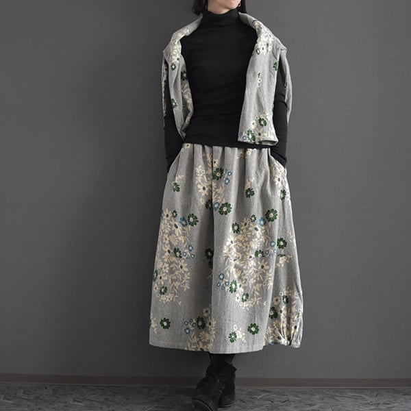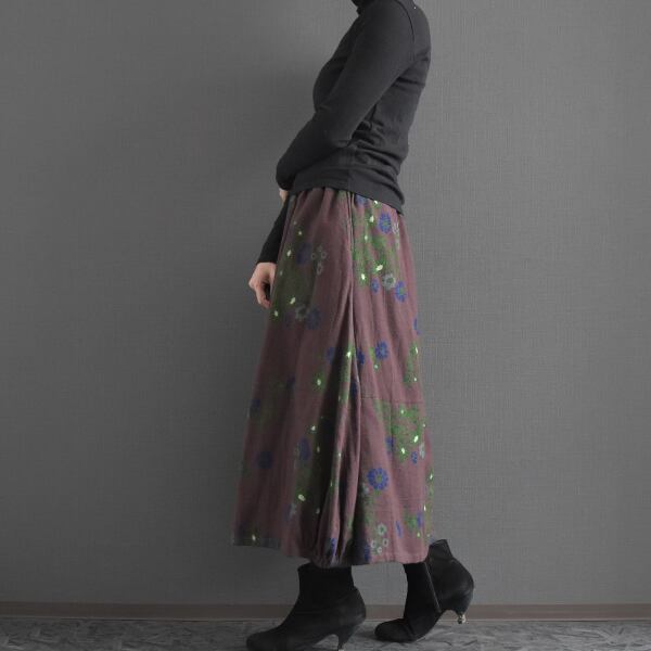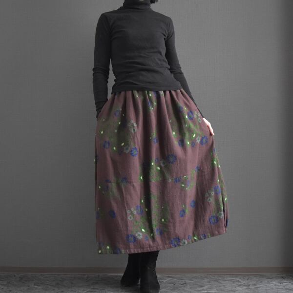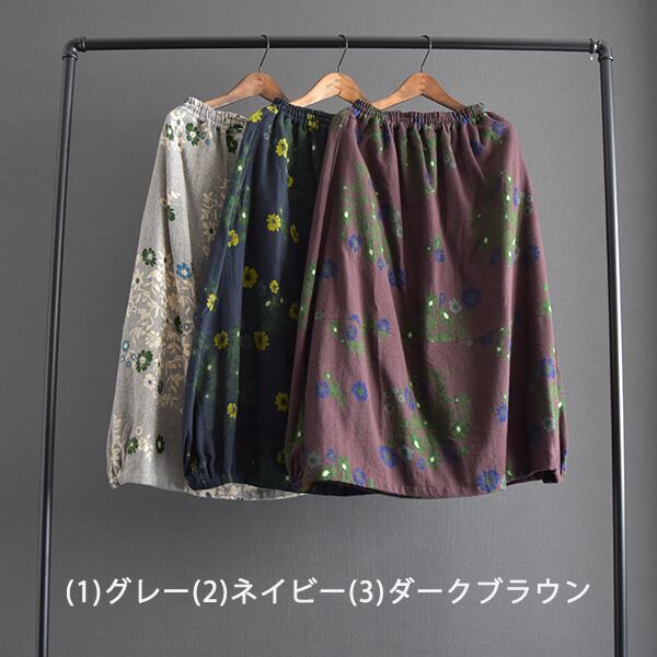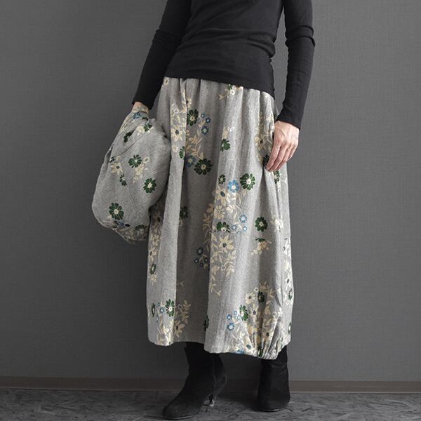 ソフト起毛コットン花柄バルーンスカート(裏地付) 2025秋冬