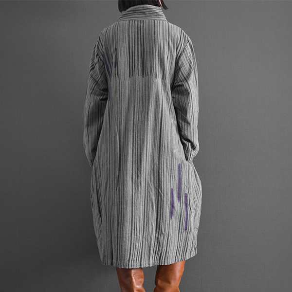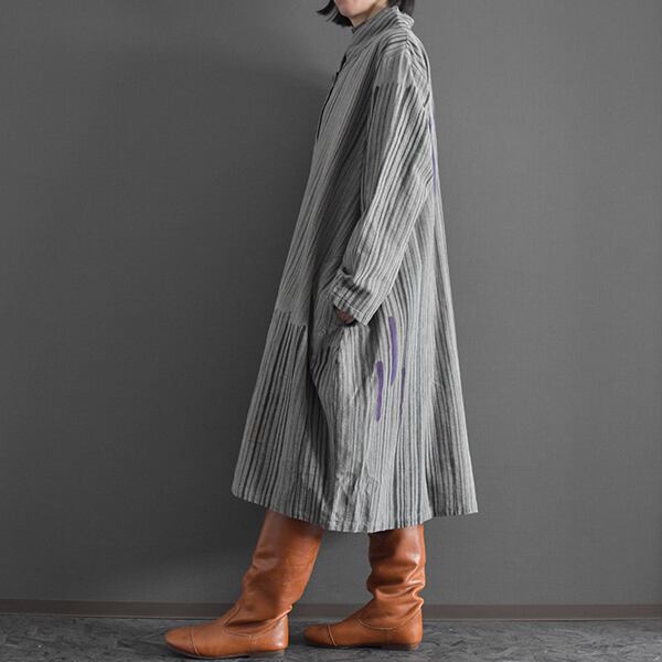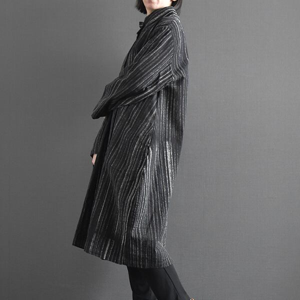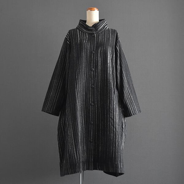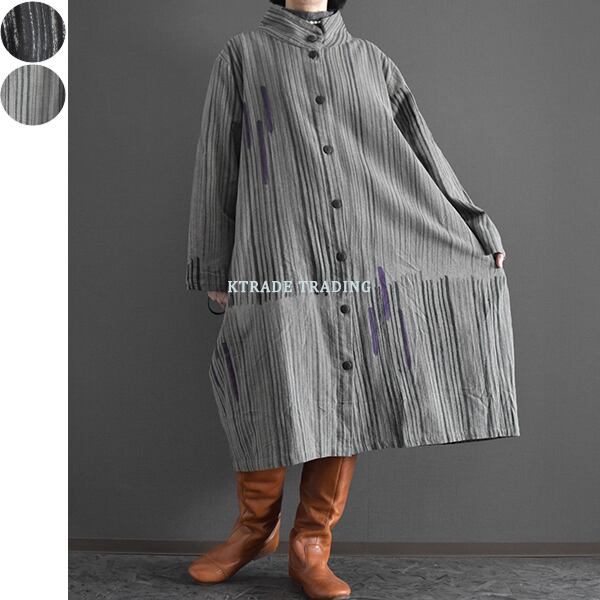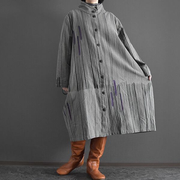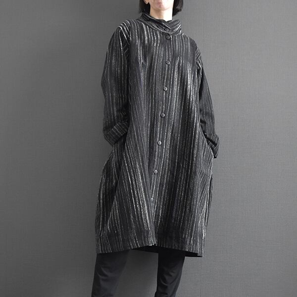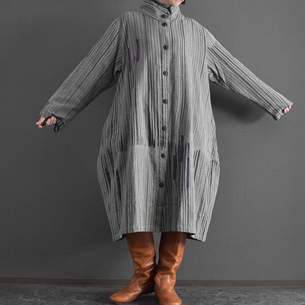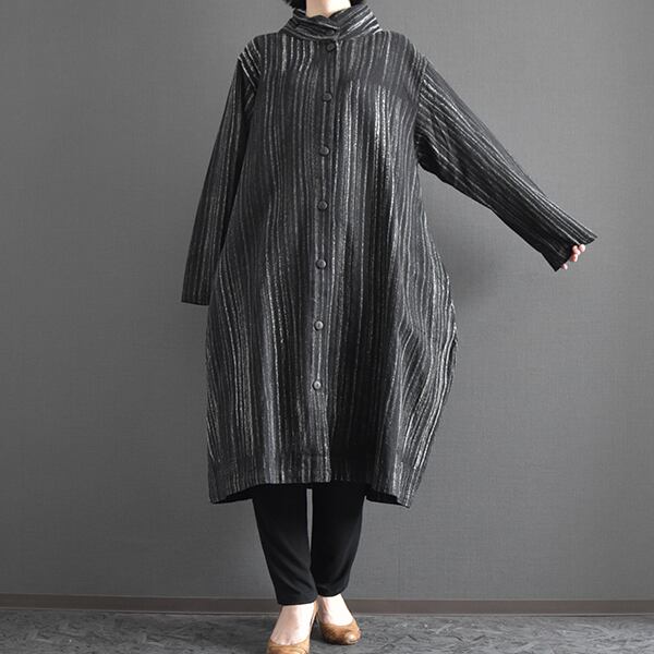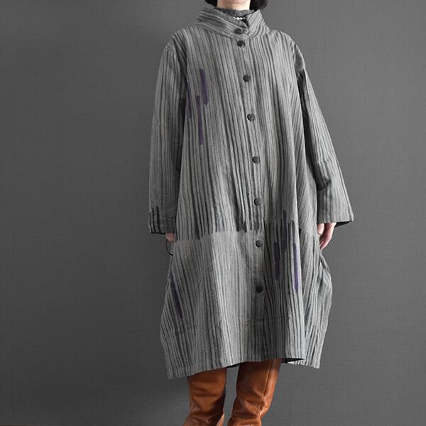 タイコットン手描きストライプ裏地付きコート 2025秋冬