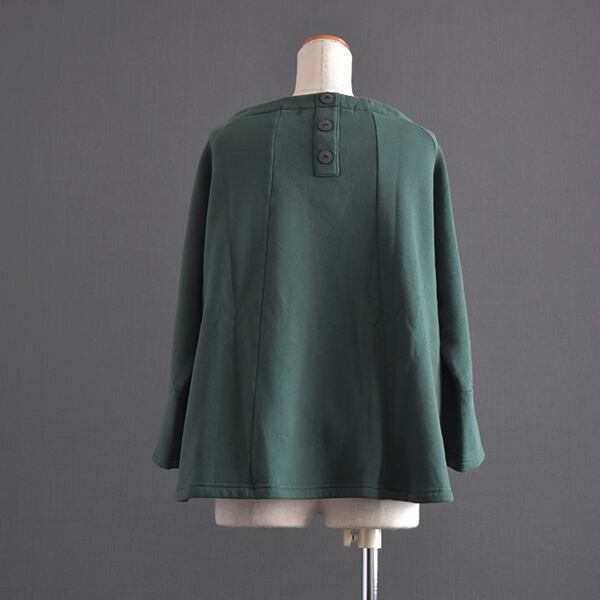 前から見たらシンプルですが、後ろの飾りボタンと切替が面白いトップス。