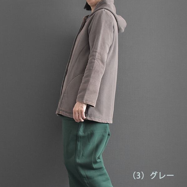 暖かい裏起毛生地を使用したフードジャケットです。