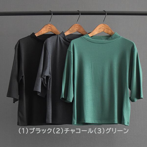 ハーフスリーブトップス ストレッチ ハイネック 五分袖 Tシャツ