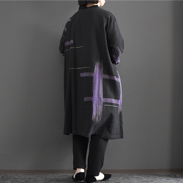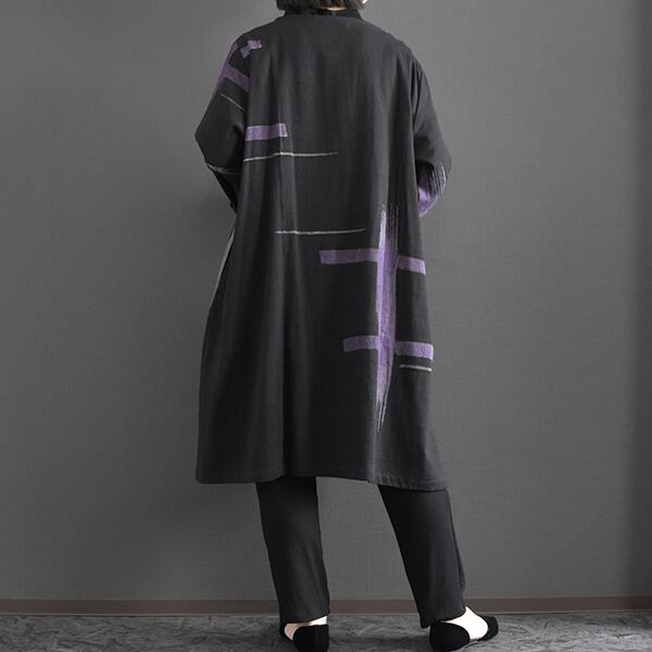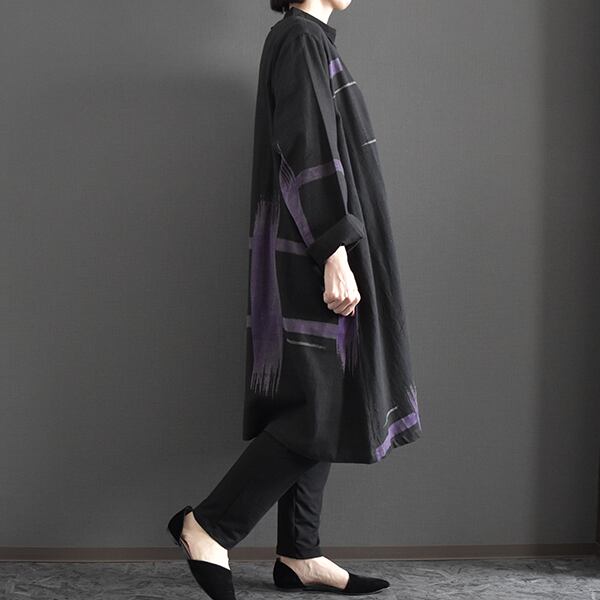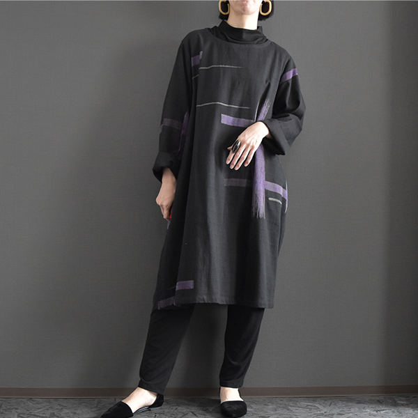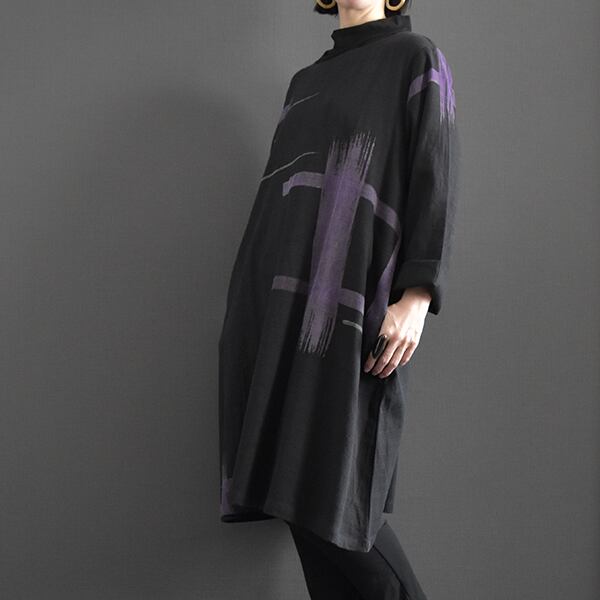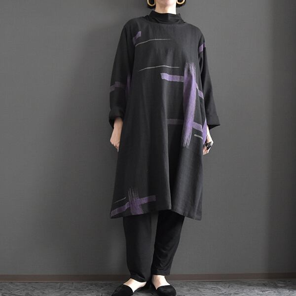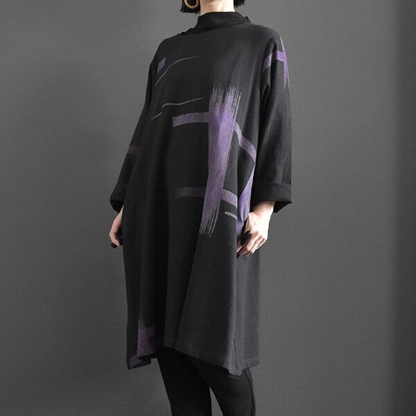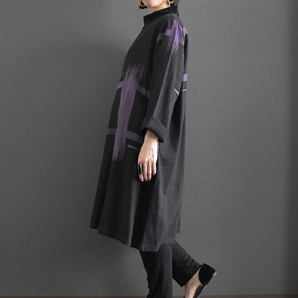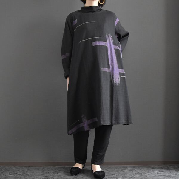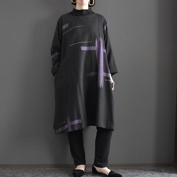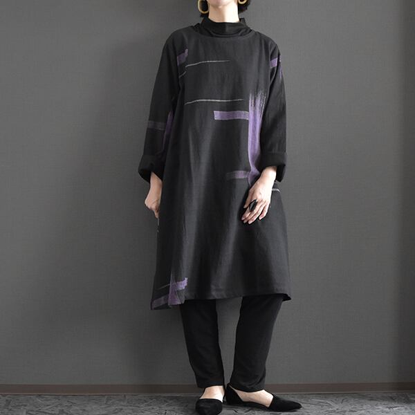 タイコットン手描き柄クルーネックAラインワンピース 2025秋冬