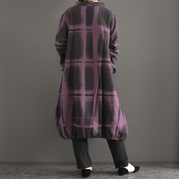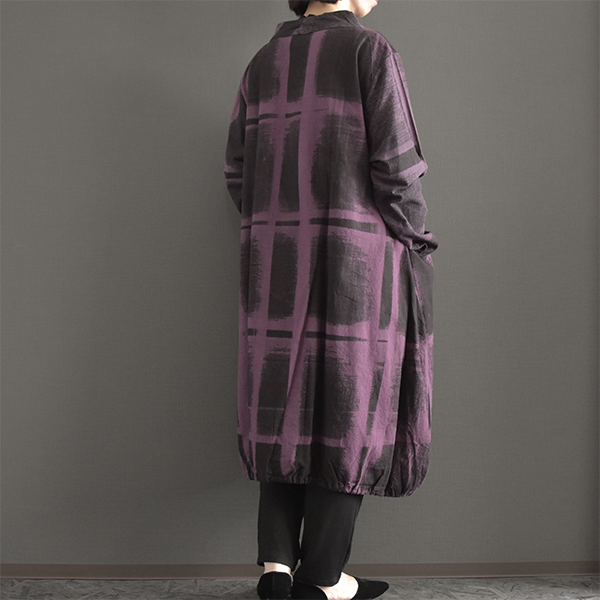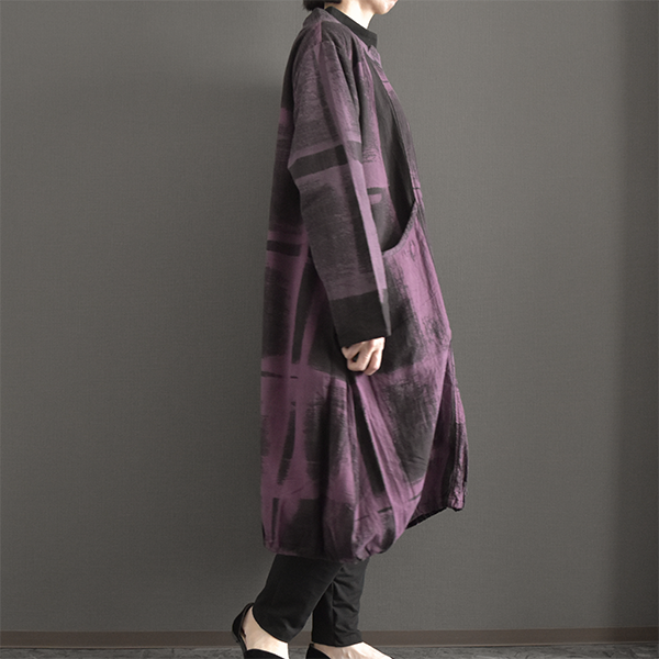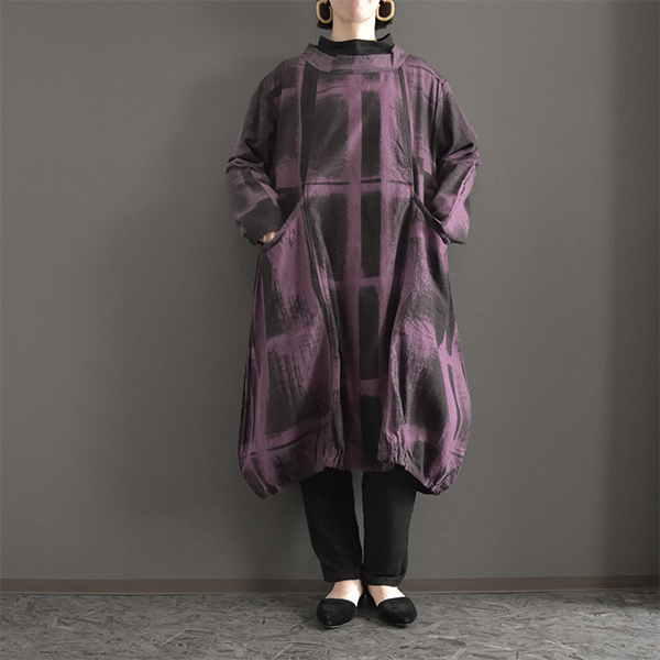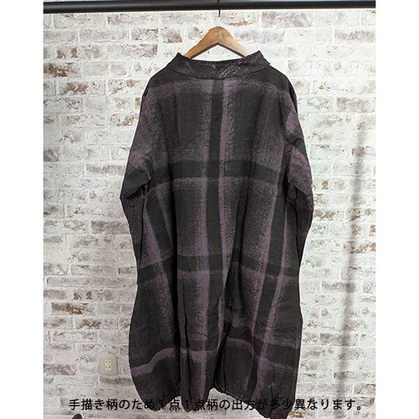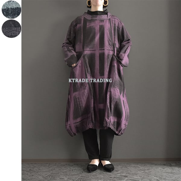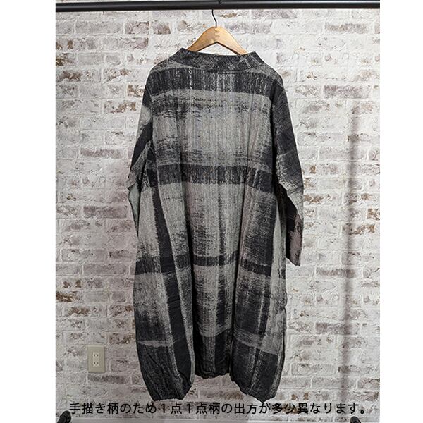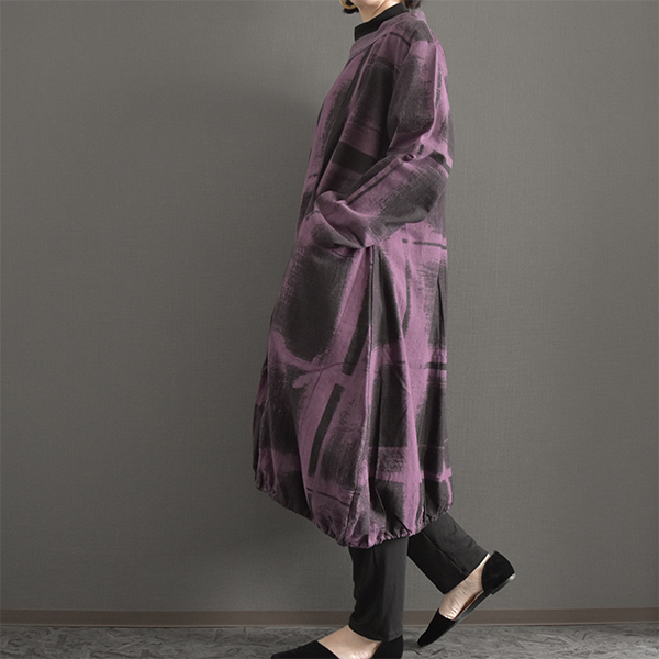 綿100%総手描き柄バルーン膝丈ワンピース 2025秋冬