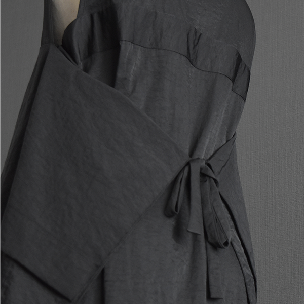 サイドのひもを結ばず着用も可、前後どちらで結んでアレンジができ、