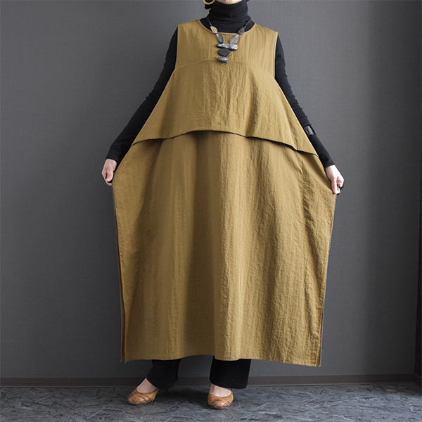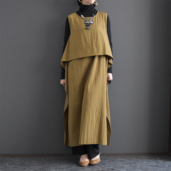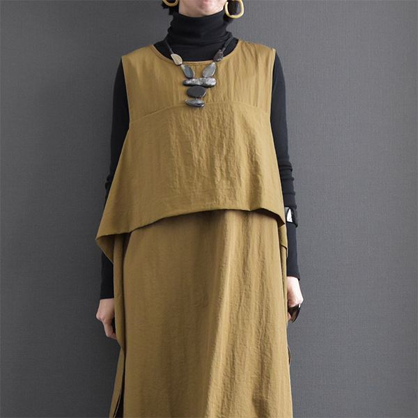 シャツやカットソーを組み合わせコーディネートを楽しめるワンピースです。