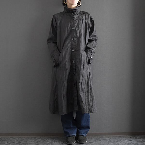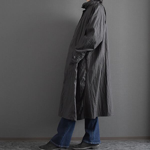 スタイリッシュな光沢感と軽さが魅力のパラシュート生地を使用したコートです。