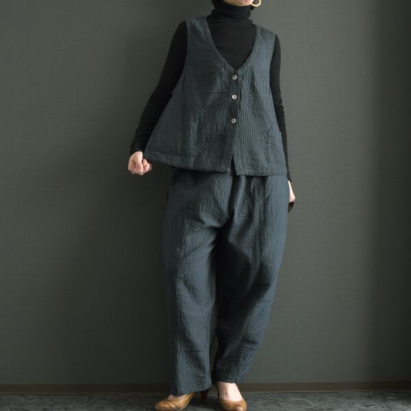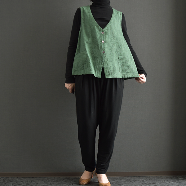 セットアップ可能 綿100%ピンタック前開きベスト 2025秋冬