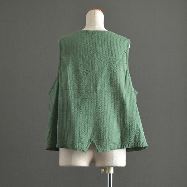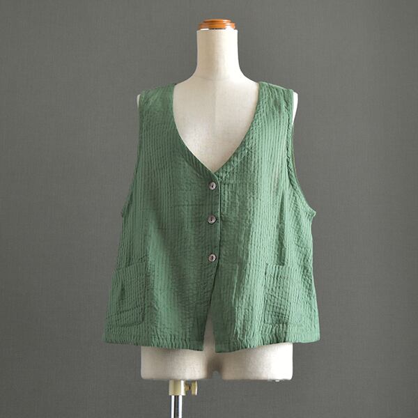 前開きのベストはシャツやカットソーなどで幅広くレイヤードが楽しめるアイテムです。