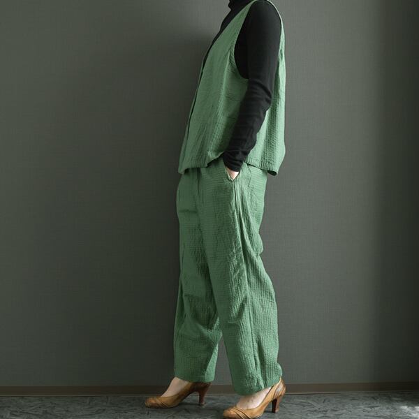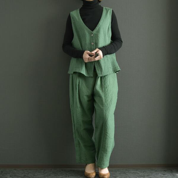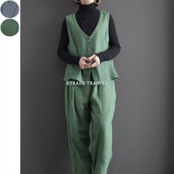セットアップ可能 綿100%ピンタック裏地付ピンタックパンツ 2025秋冬