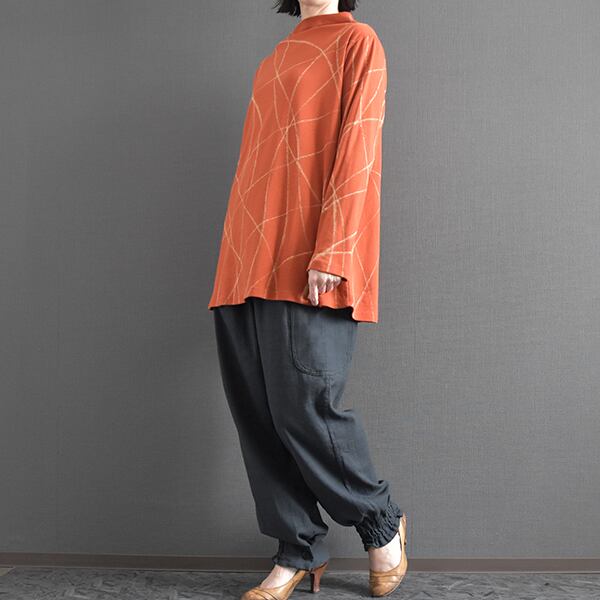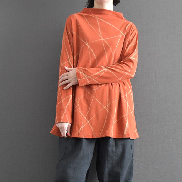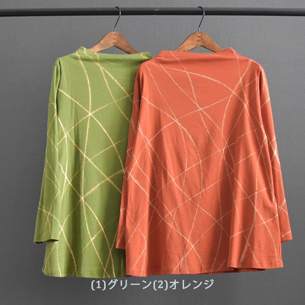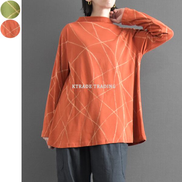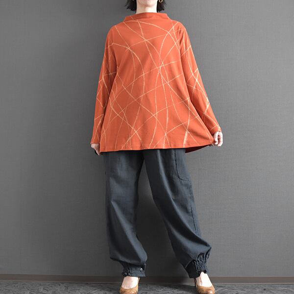 コットンニットブリーチ総柄ハイネックトップス 2025秋冬