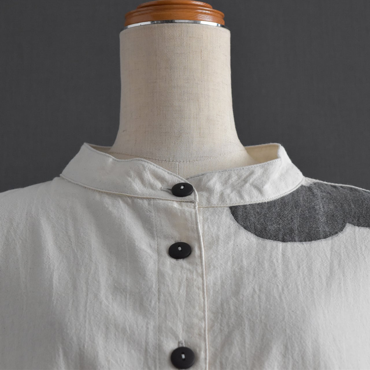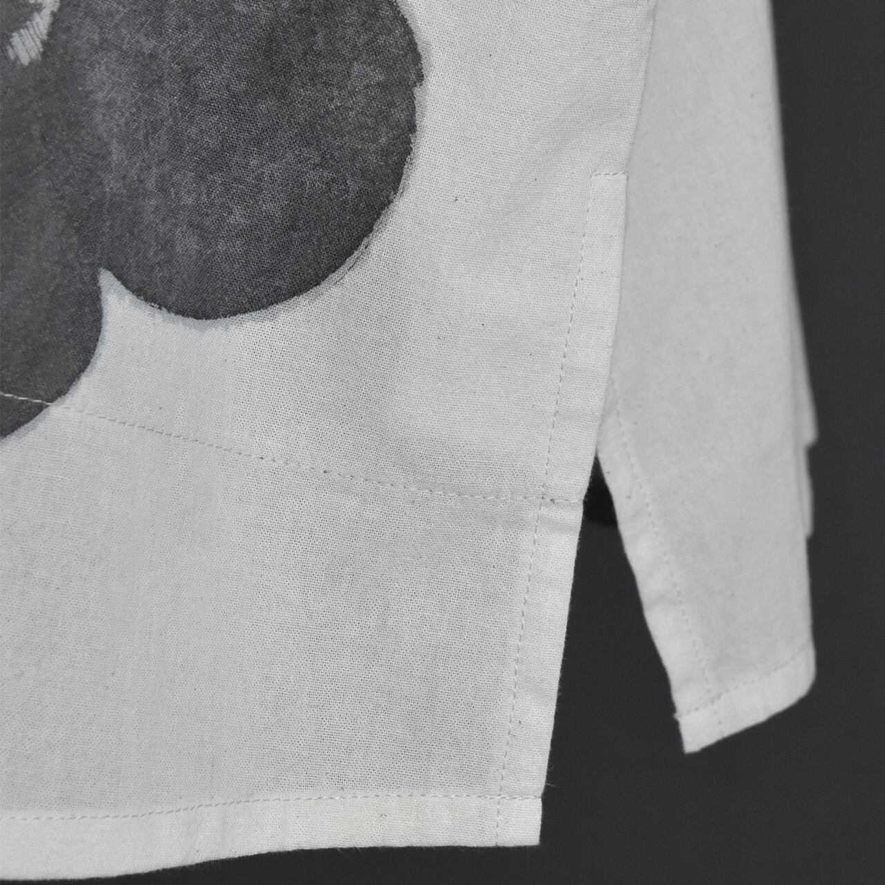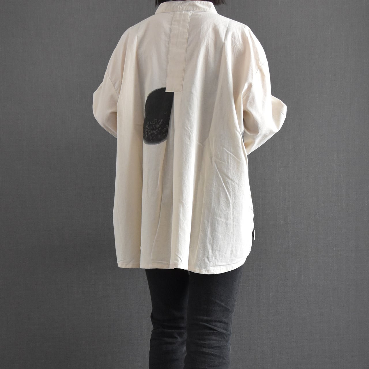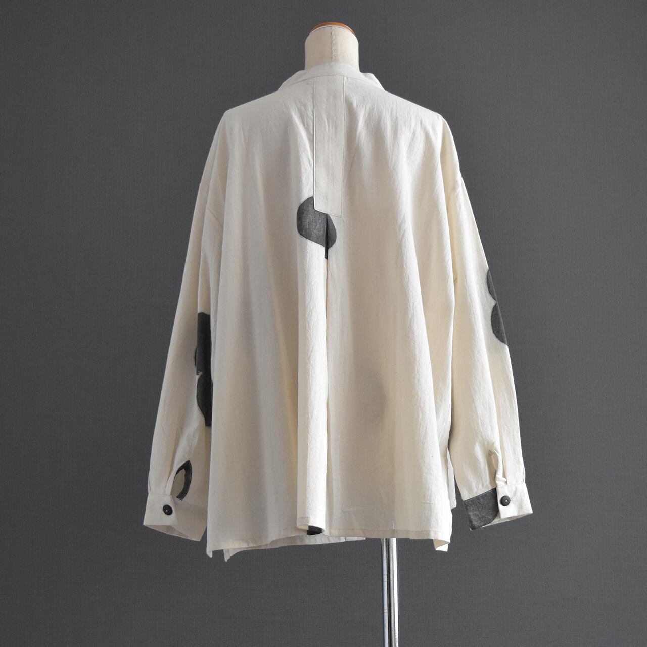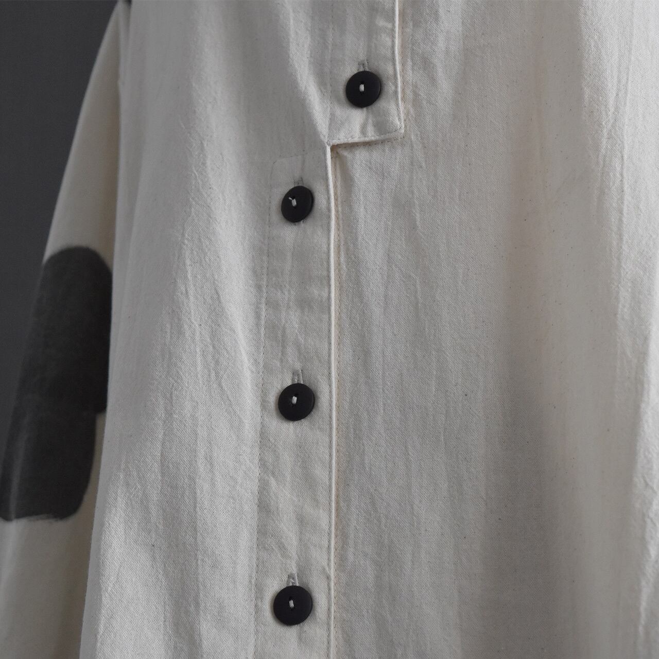 手描きのランダムな柄配置が、ナチュラルでありながらモード感のある表情を演出します。