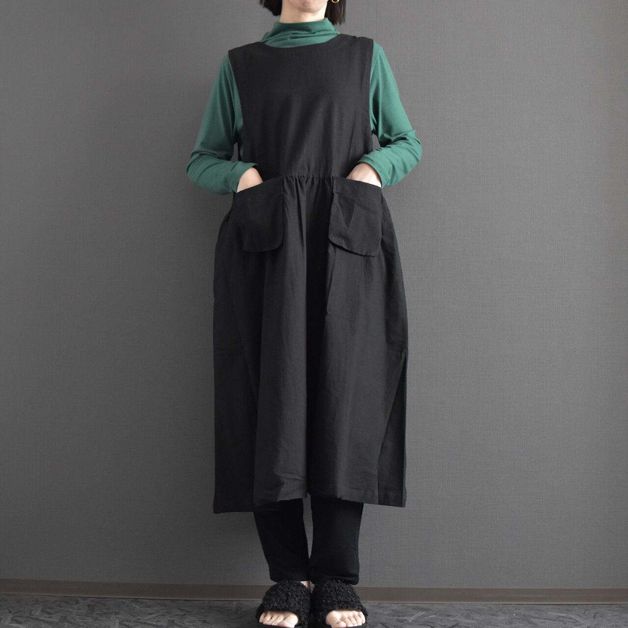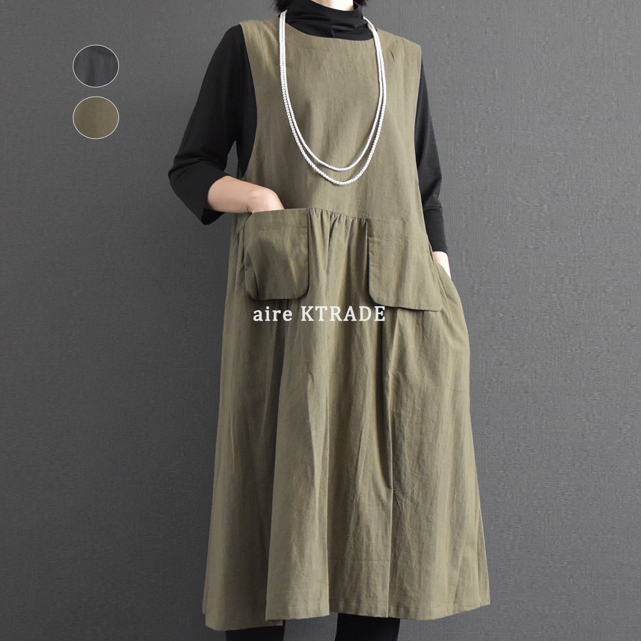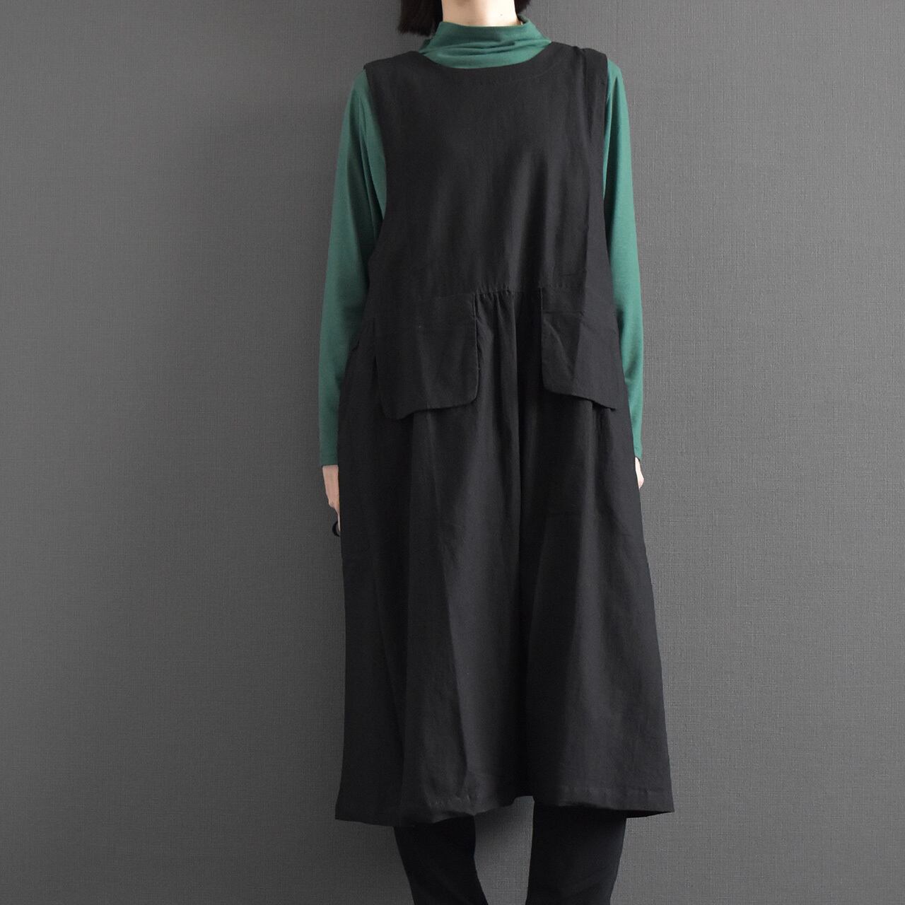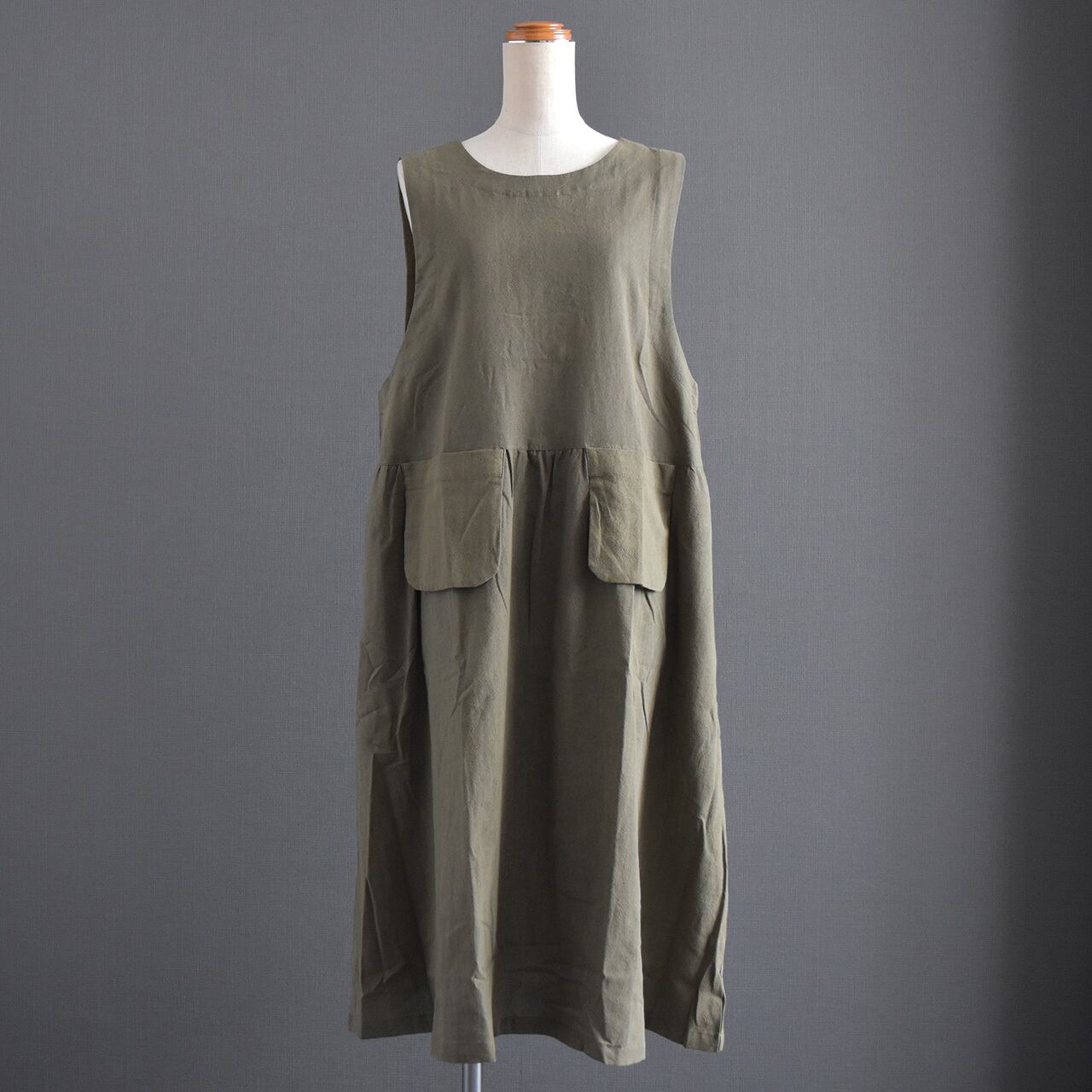 ナチュラルな風合いと大人の落ち着きを兼ね備えた、ジャンパースカートワンピース。
