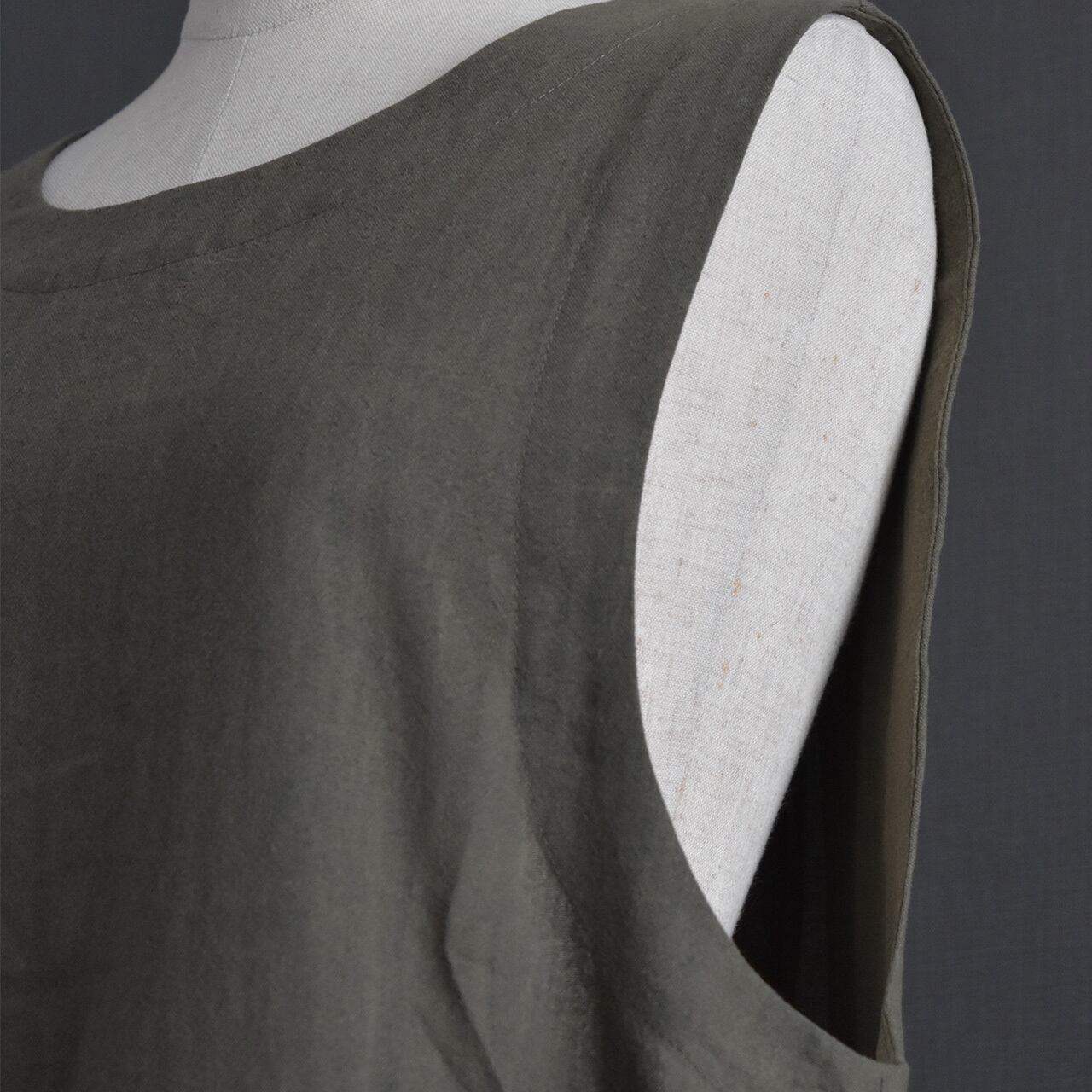 程よくハリのある素材感で、身体のラインを拾いにくく、すっきりとしたシルエットを演出します。