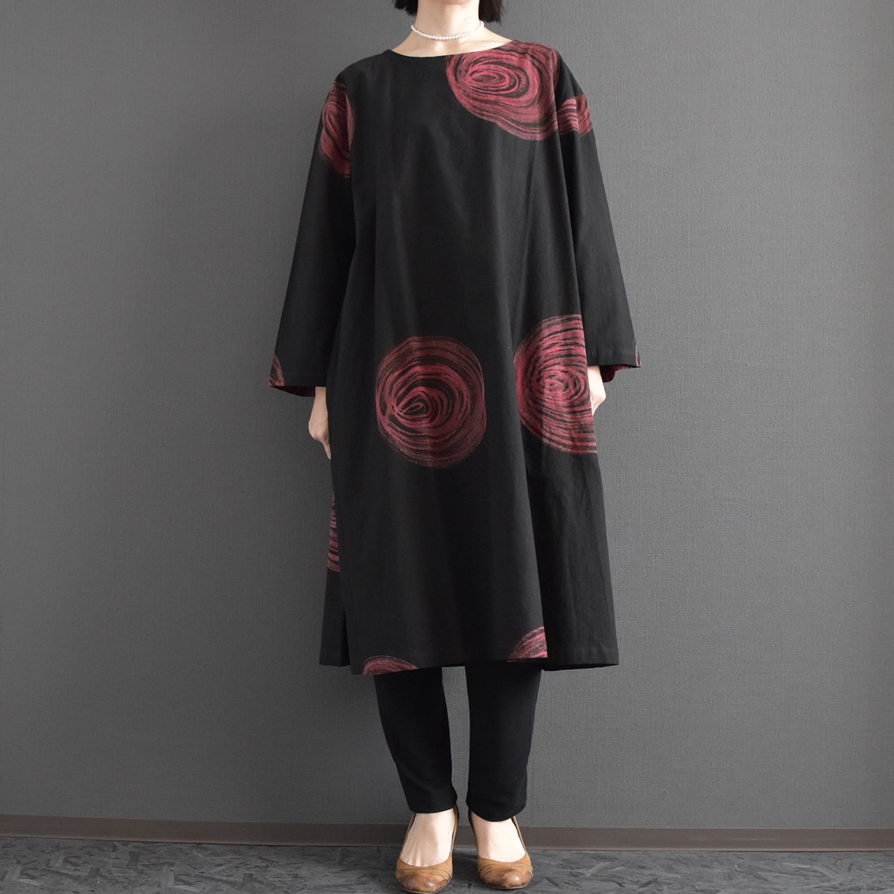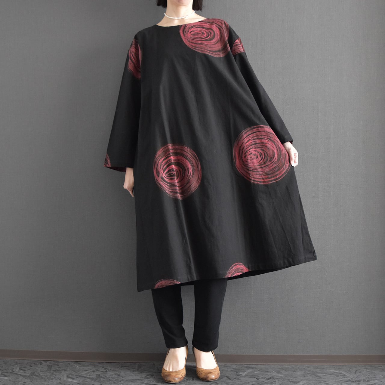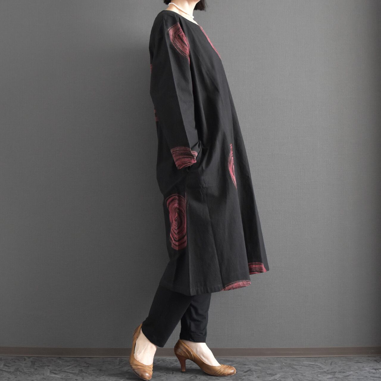 一枚で着映えするデザインながら、レギンスやパンツとのレイヤードも楽しめ、季節を問わず活躍。