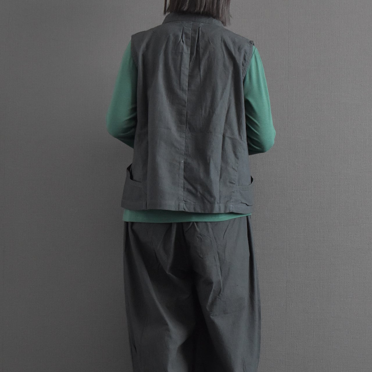 タイコットン墨染め前開きベスト 2026春 セットアップ可能