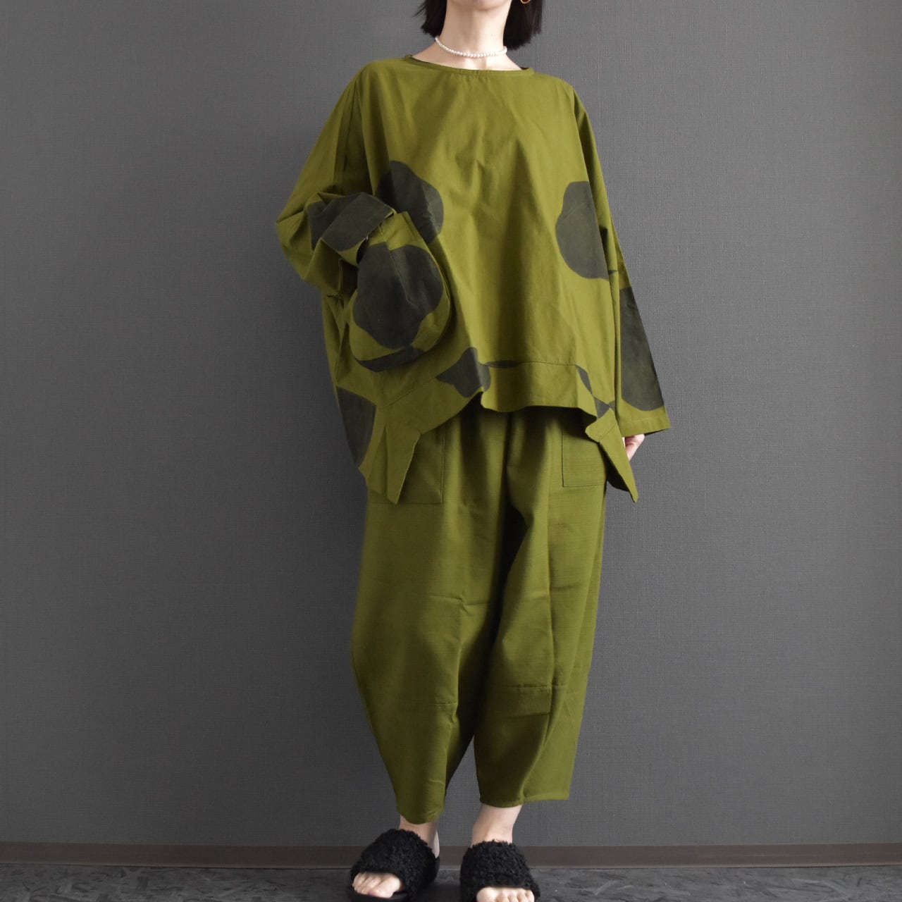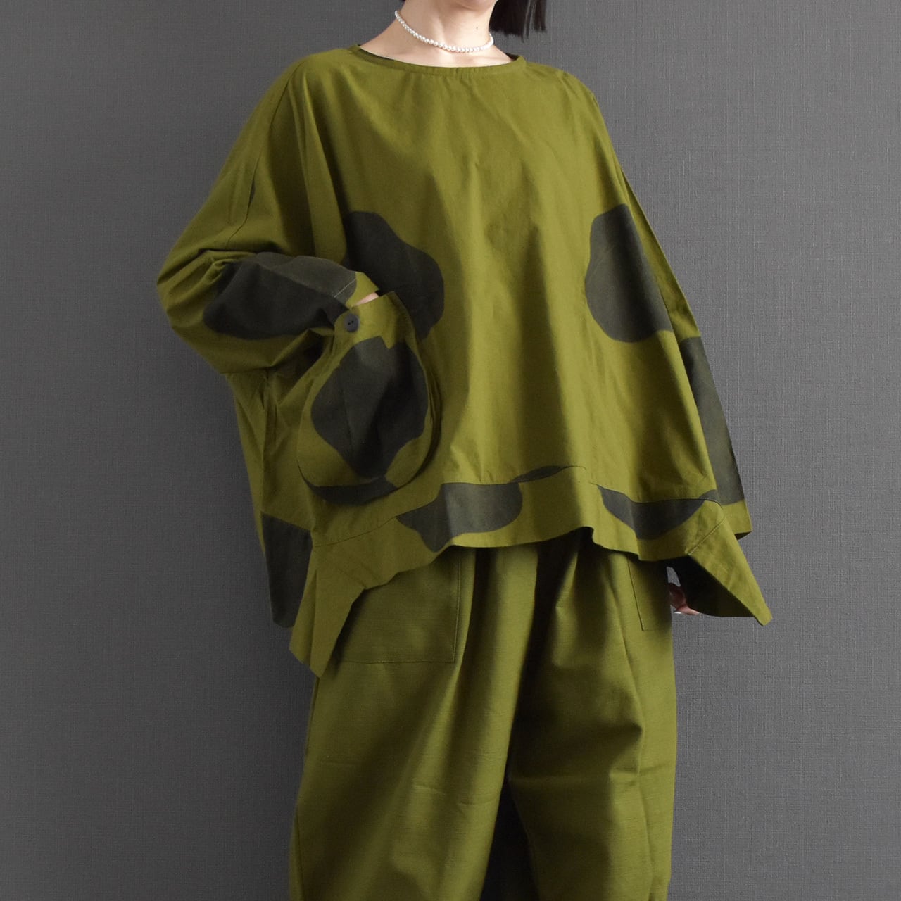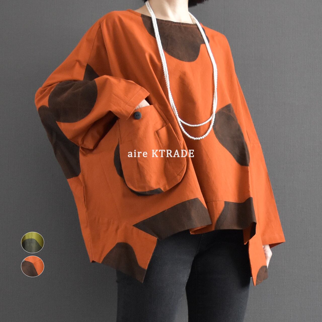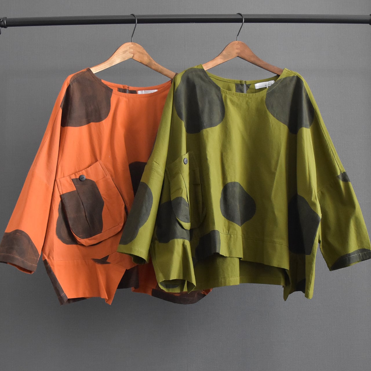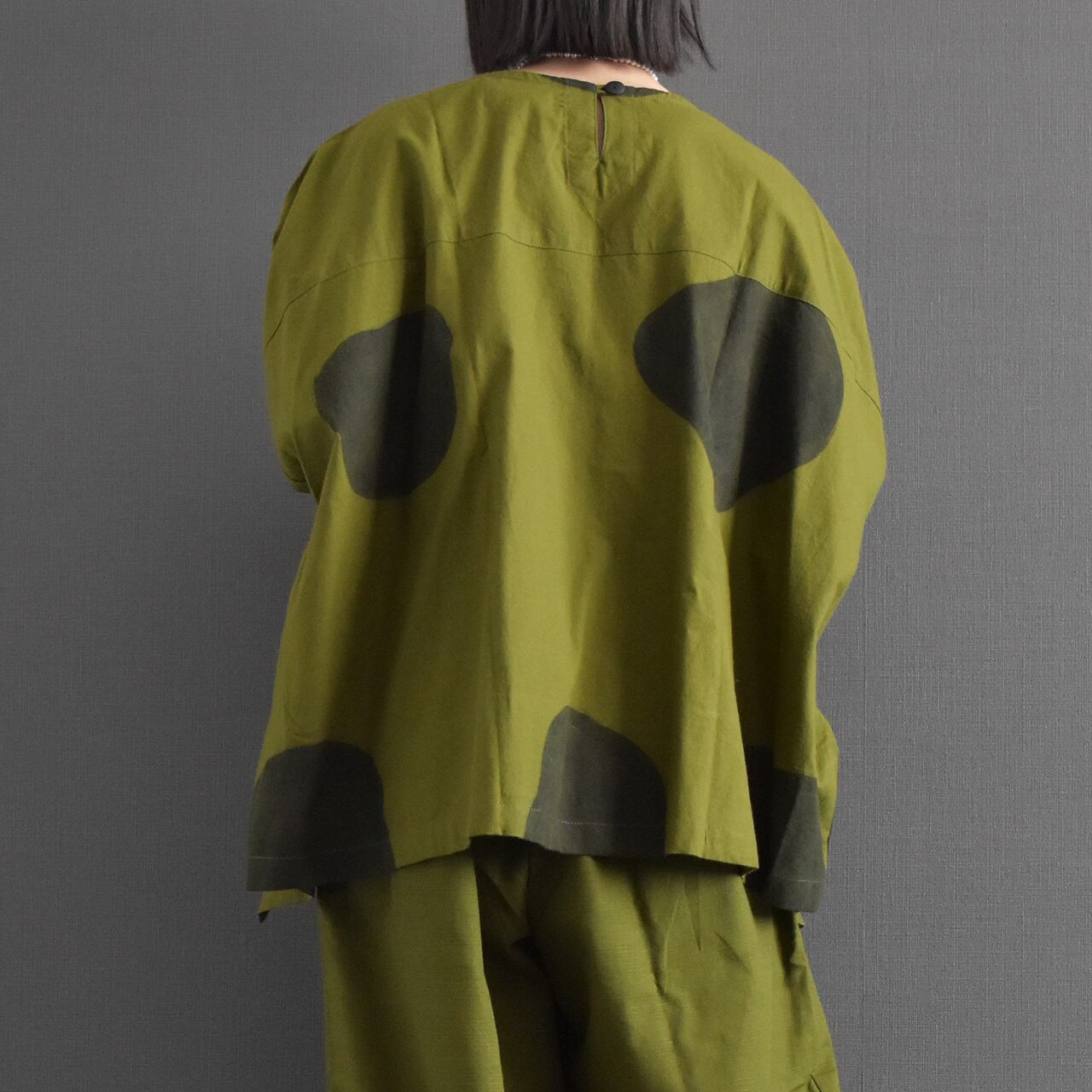 タイコットン手描きドットドロップショルダーブラウス 2026春