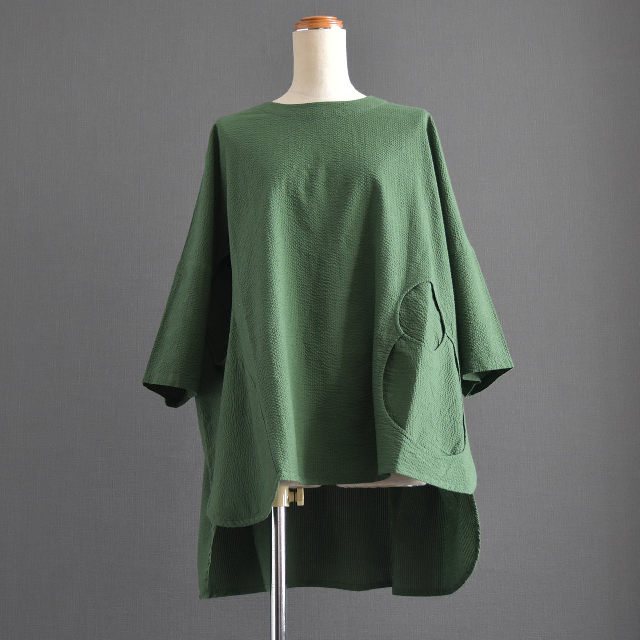 裏地:なし/ポケット:なし/生地の厚さ:凸凹した薄手布帛/透け感:なし/伸縮性:なし