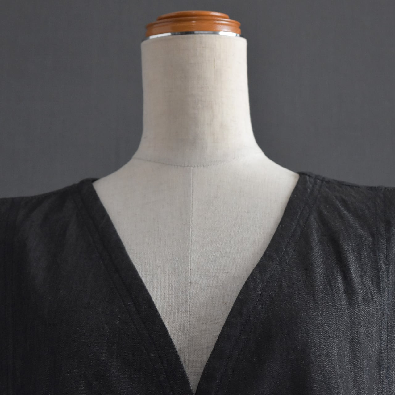 Vネックデザインですっきりとした印象に仕上げ、前開き仕様なので着脱も簡単。