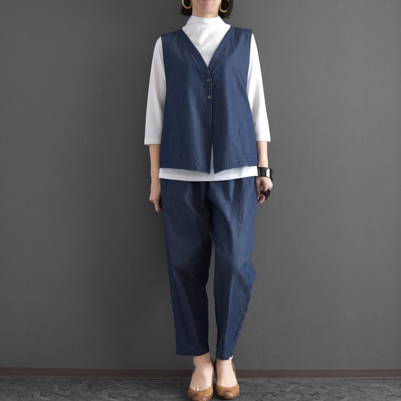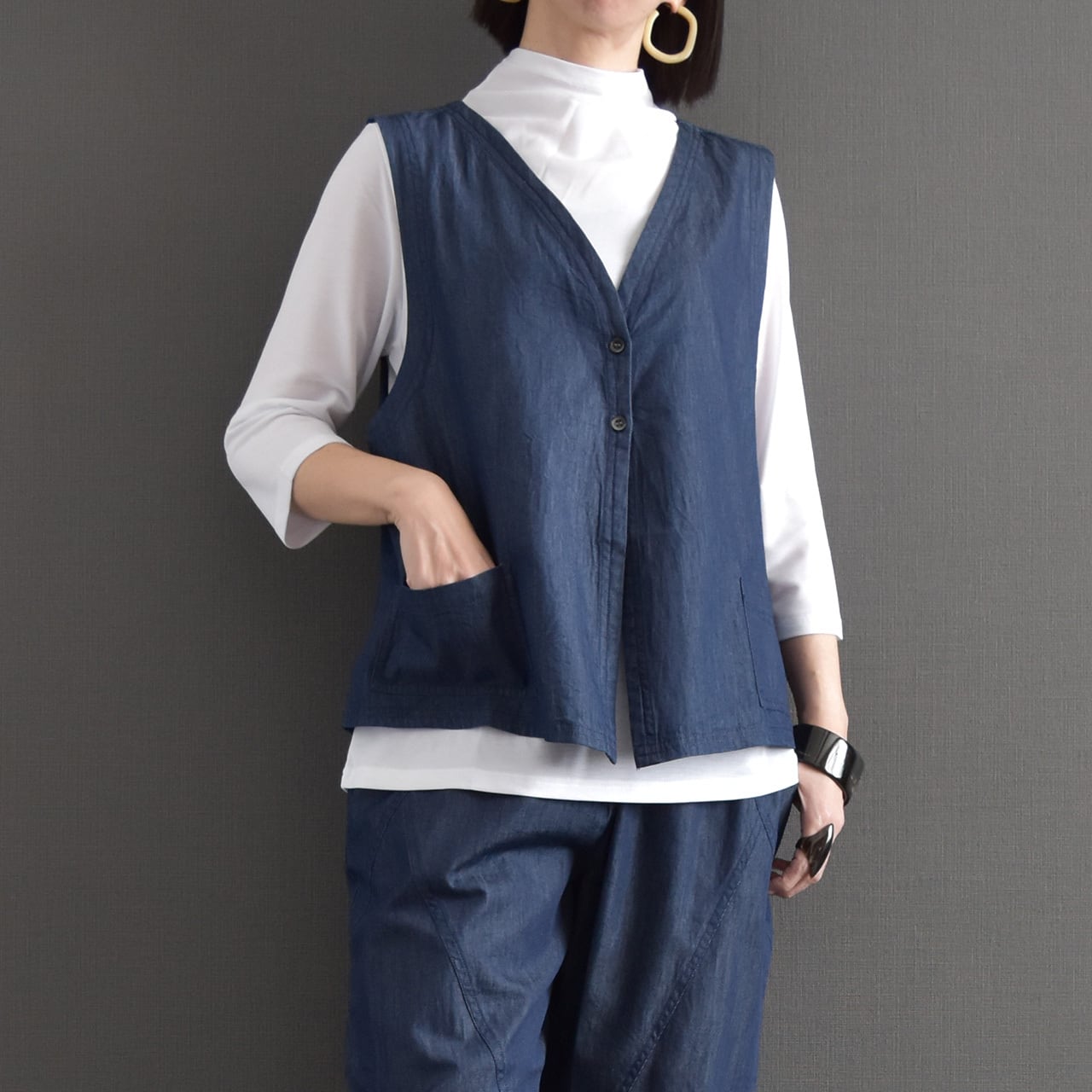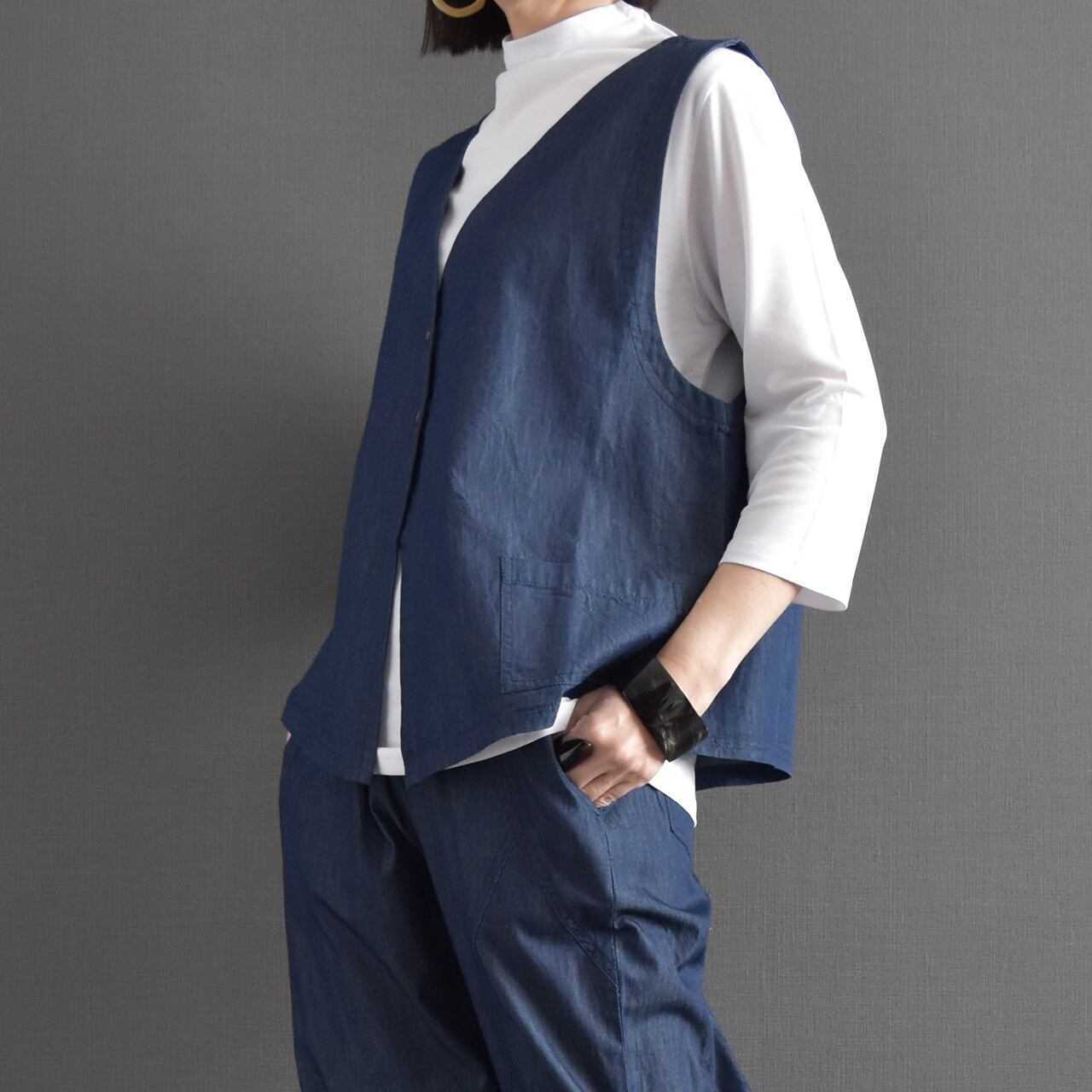 デニム初心者の方にも取り入れやすい、軽さと着回し力を兼ね備えたベストです。