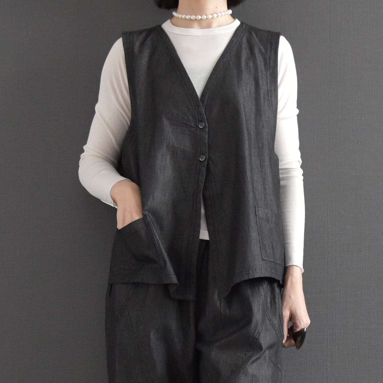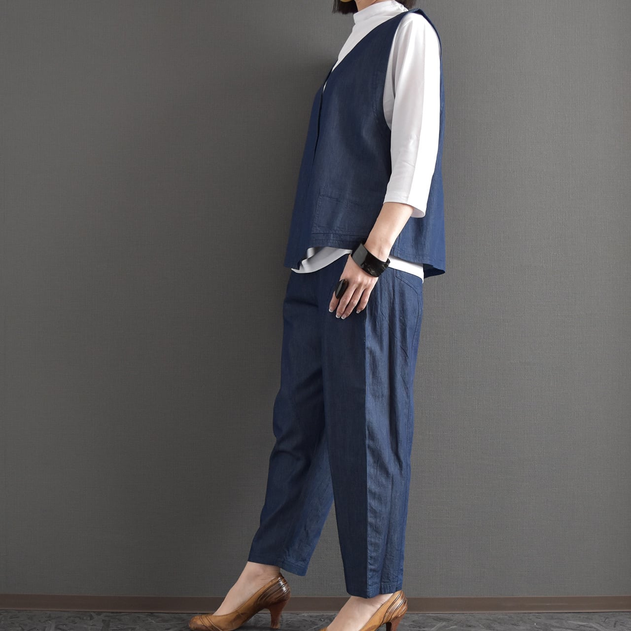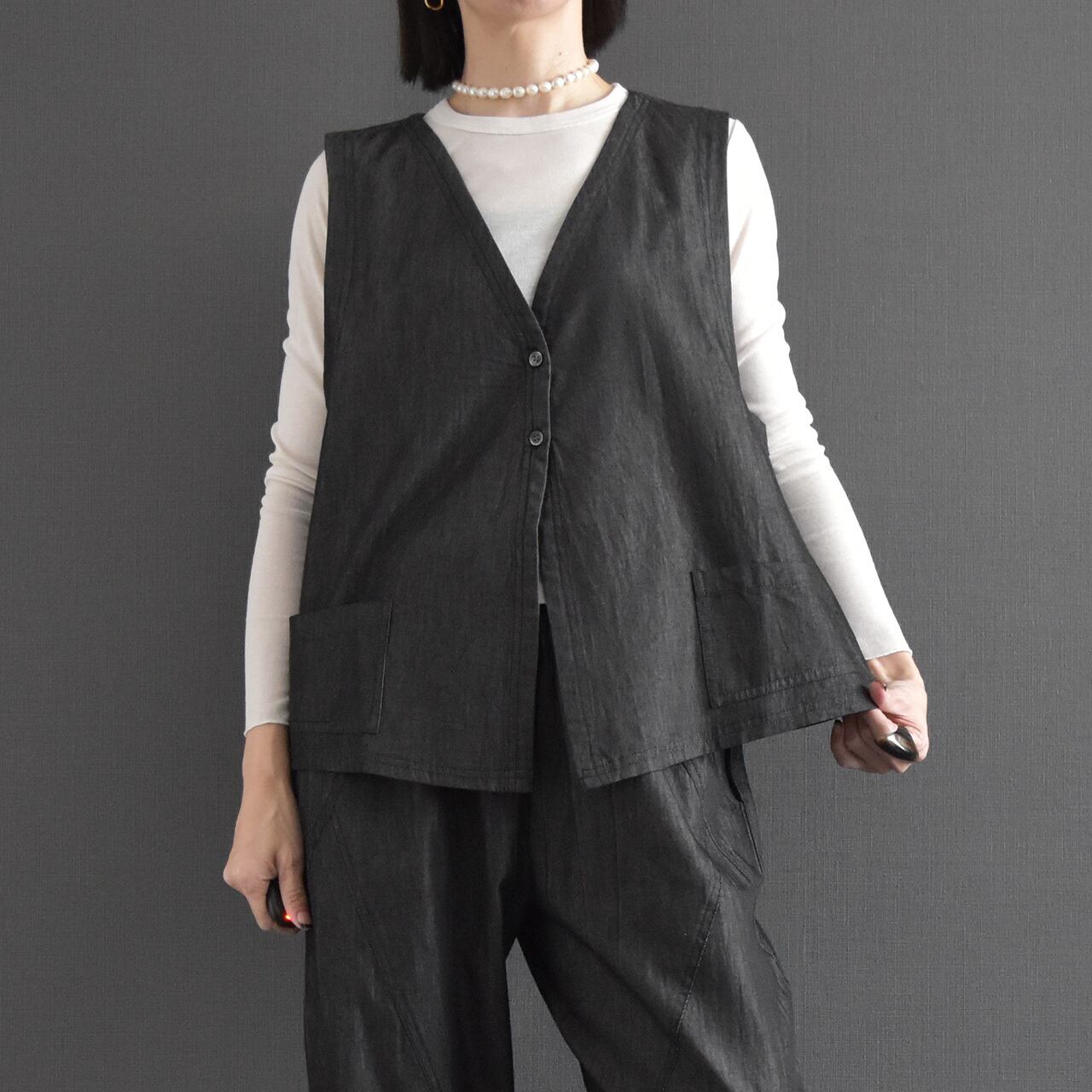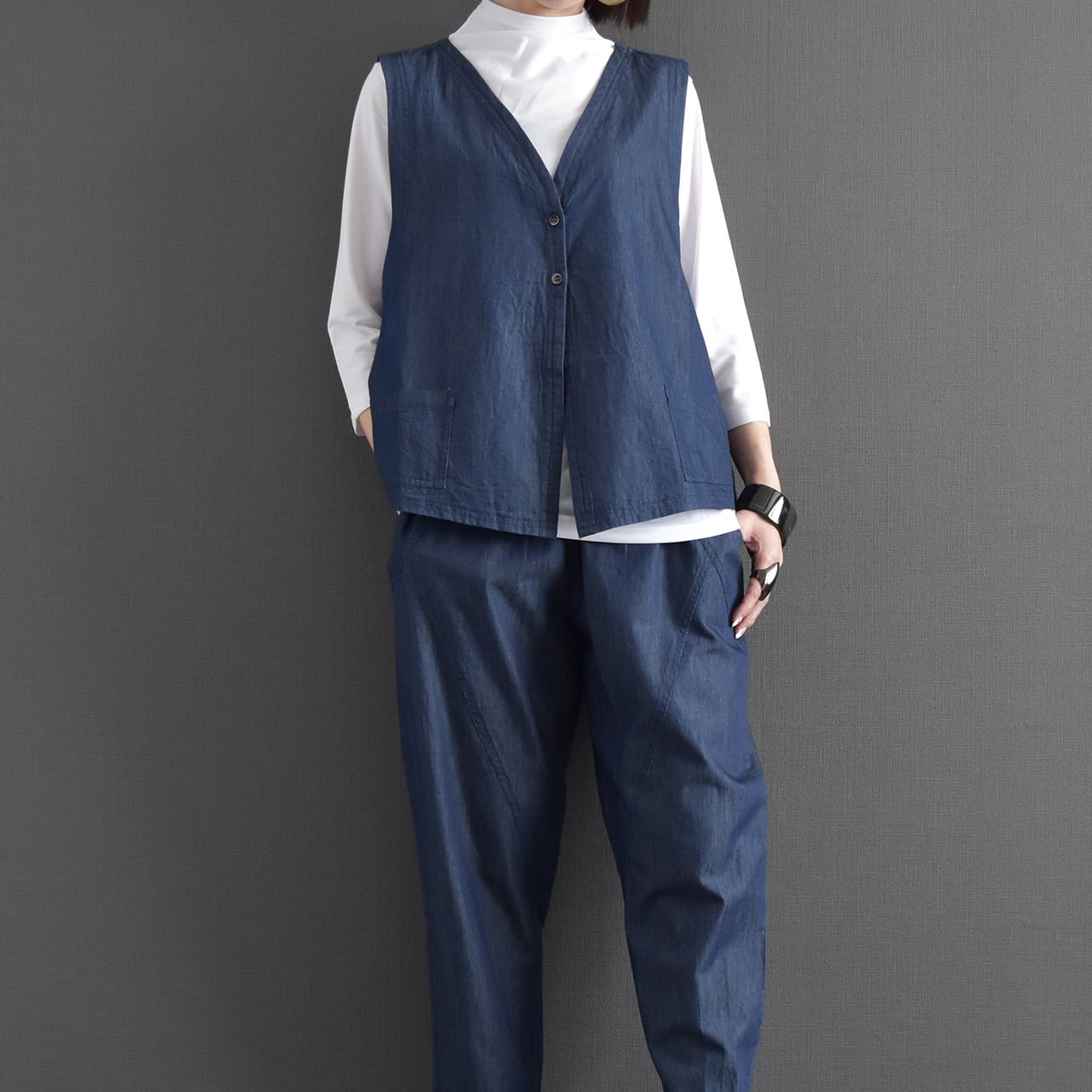 デニム初心者の方にも取り入れやすい、軽さと着回し力を兼ね備えたベストです。