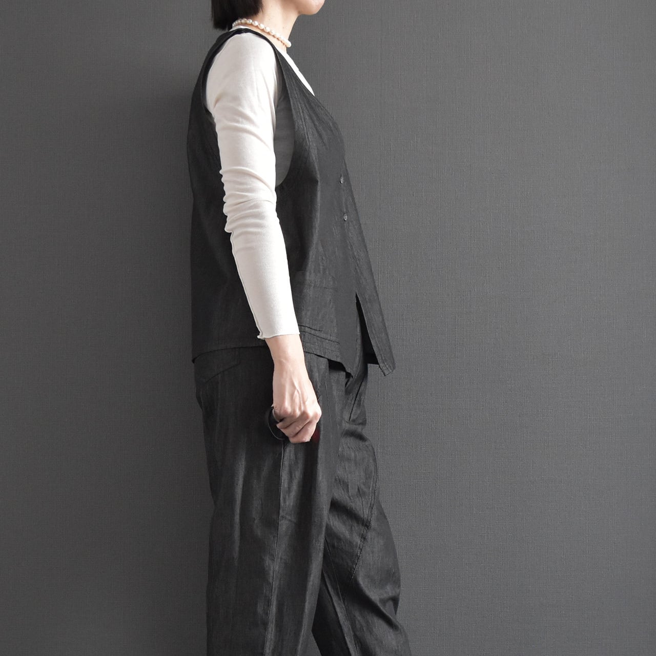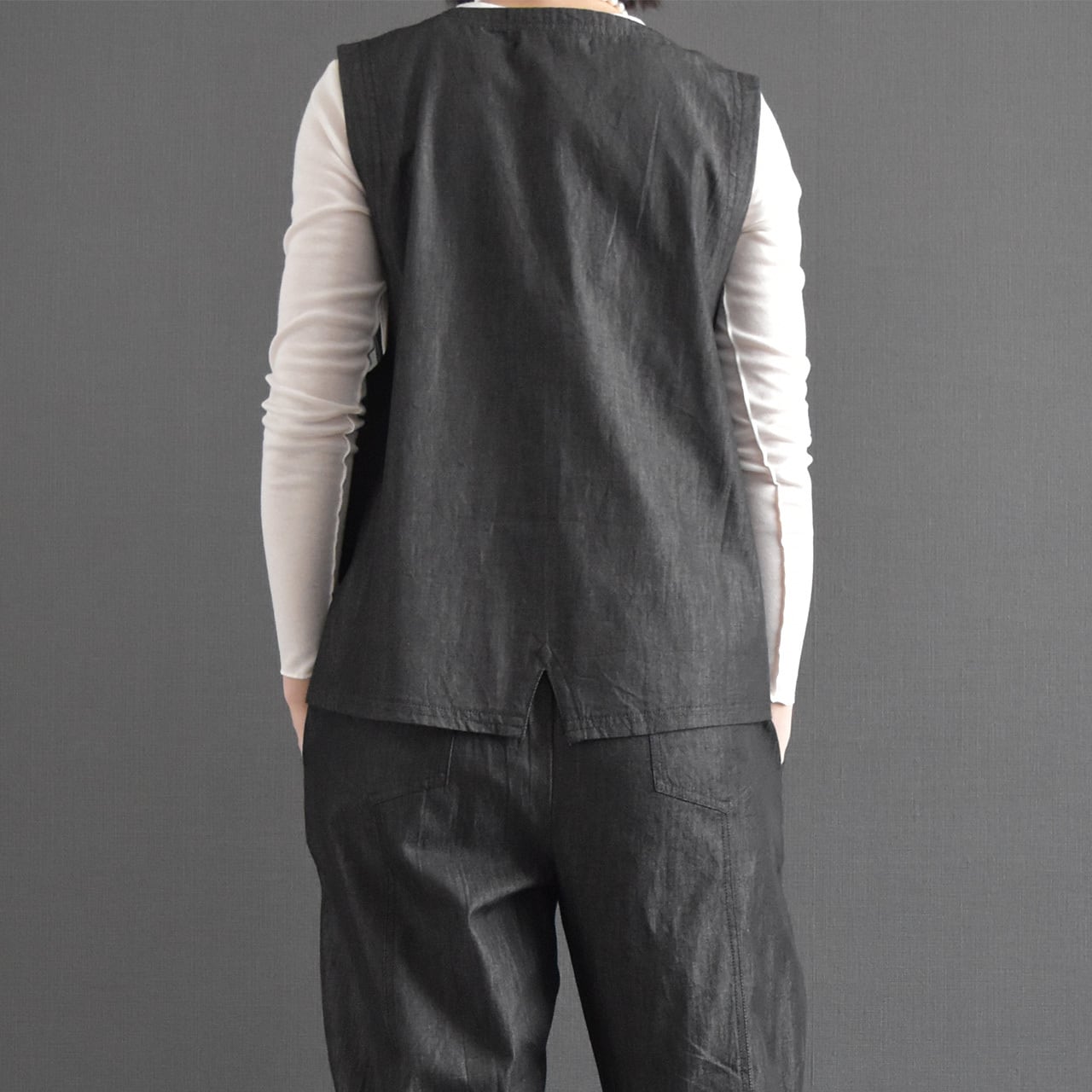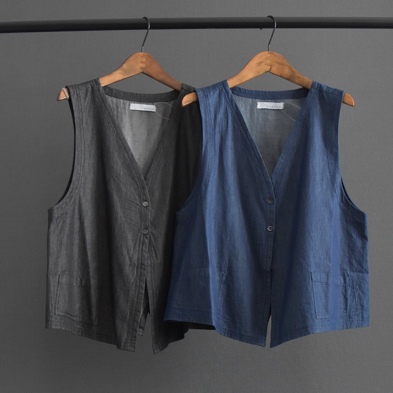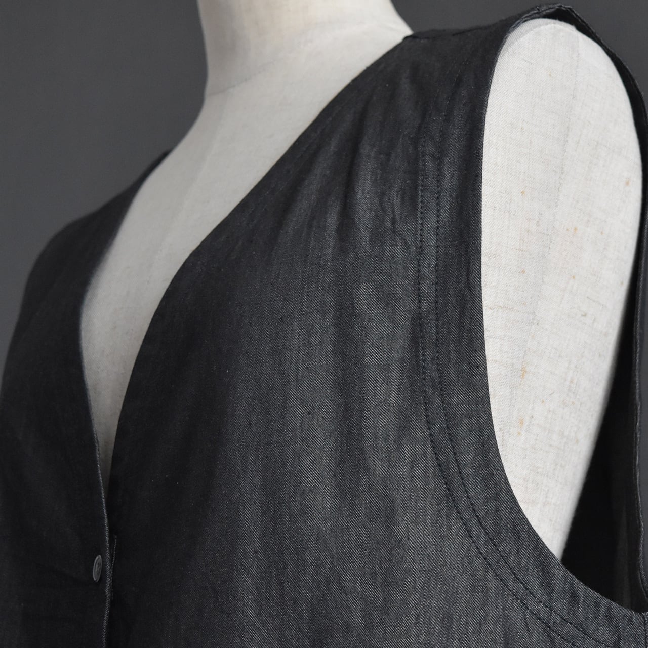 軽やかな着心地が魅力の、ライトオンスデニムを使用した前開きベスト。