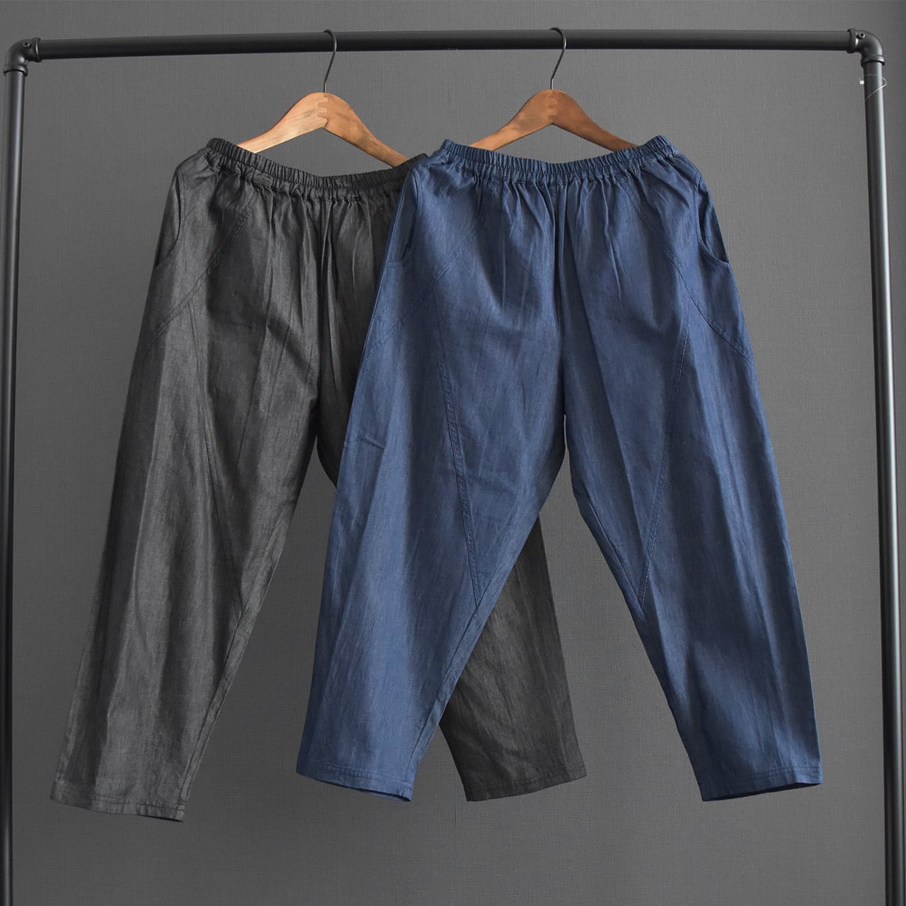 軽やかな着心地が魅力の、ライトオンスデニムを使用したリラックスパンツ。