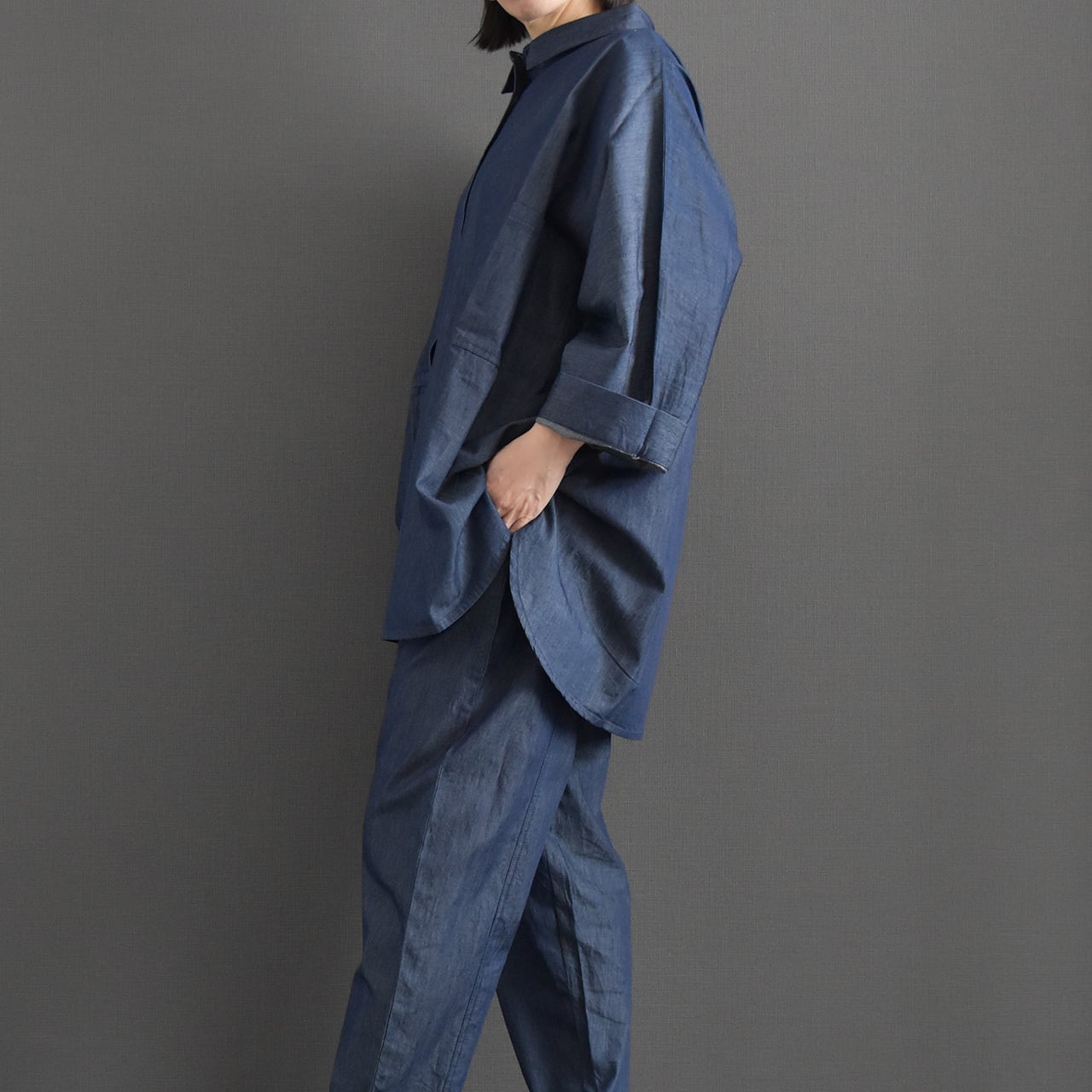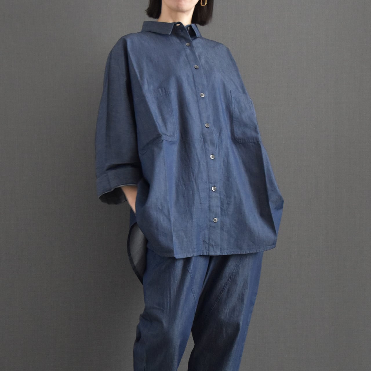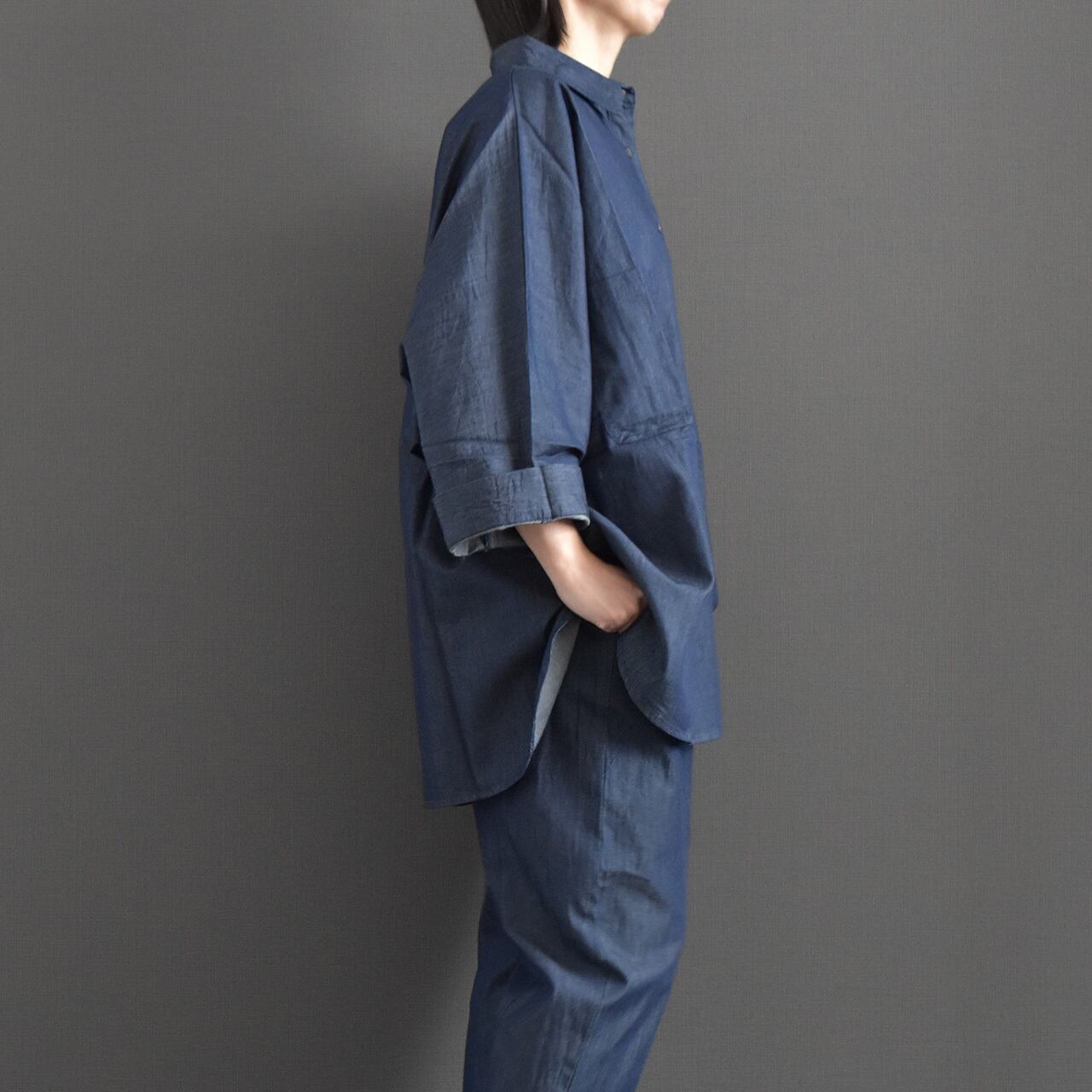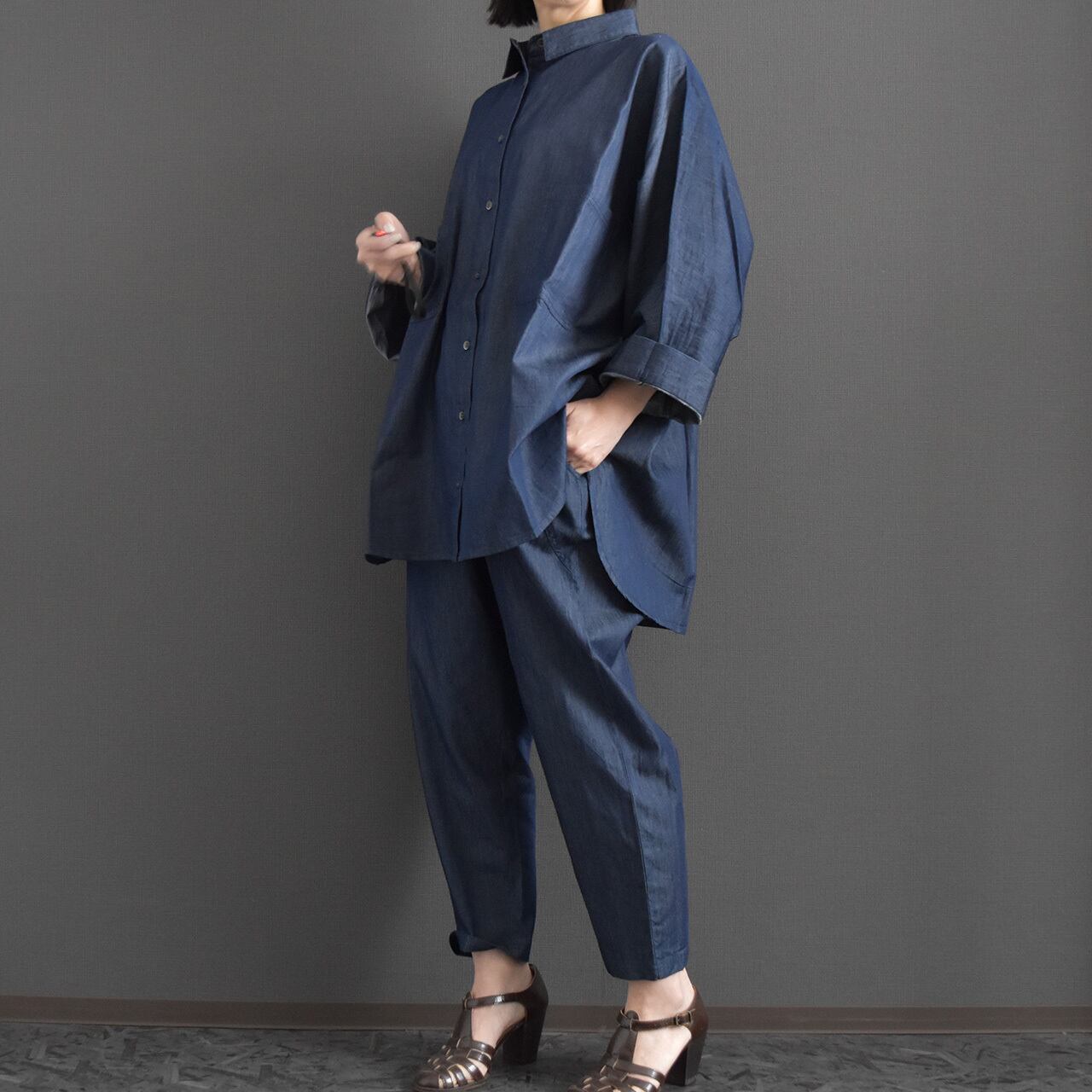 軽やかな着心地が魅力の、ライトオンスデニムを使用したドルマンブラウス。