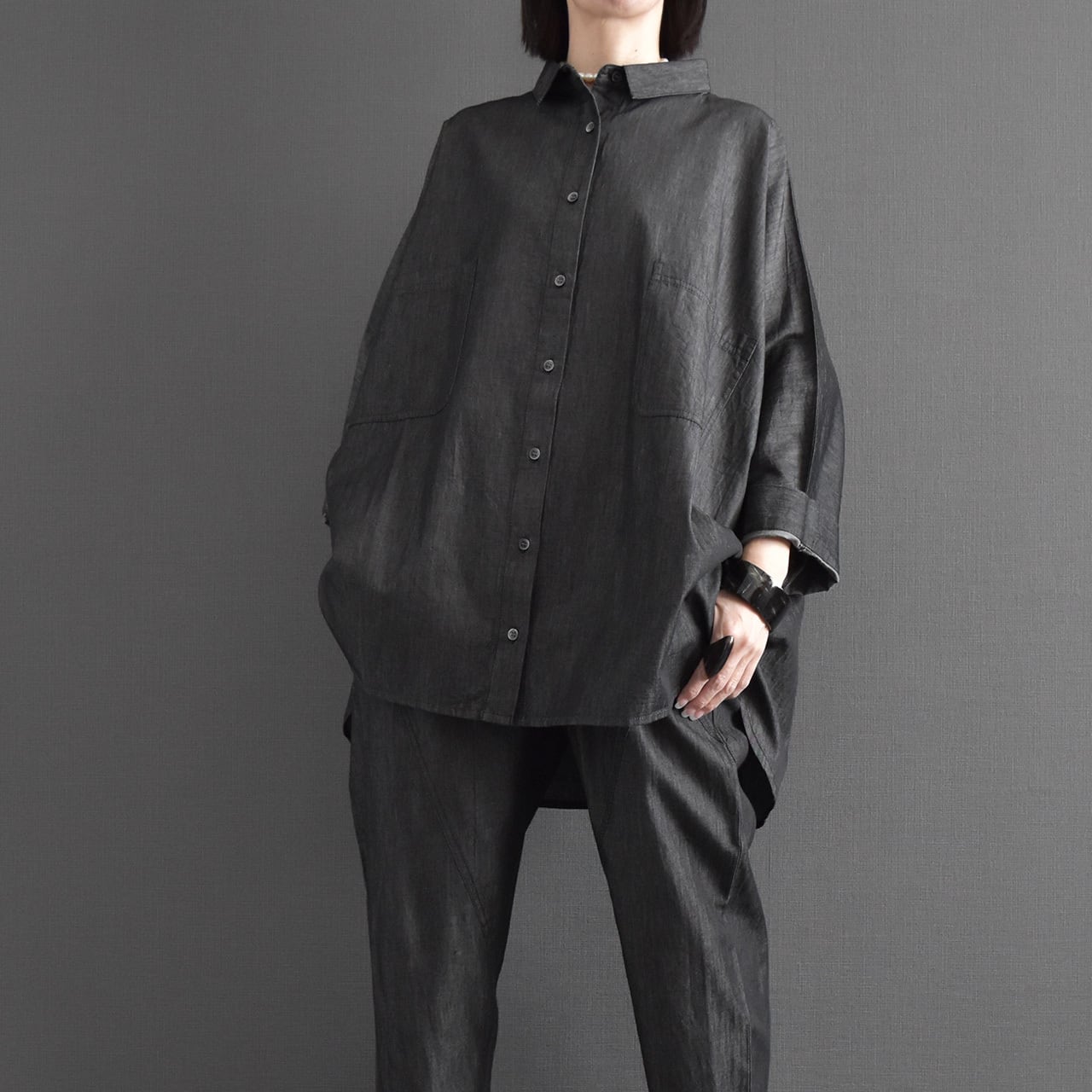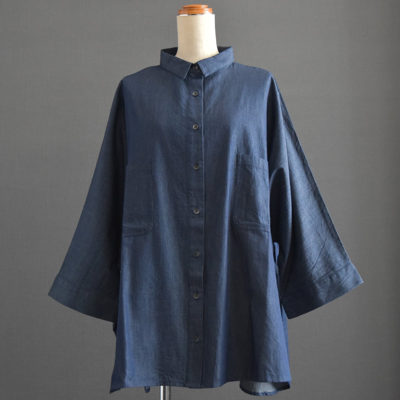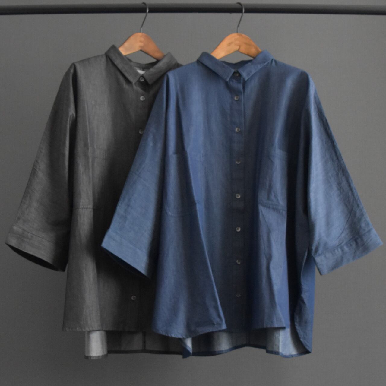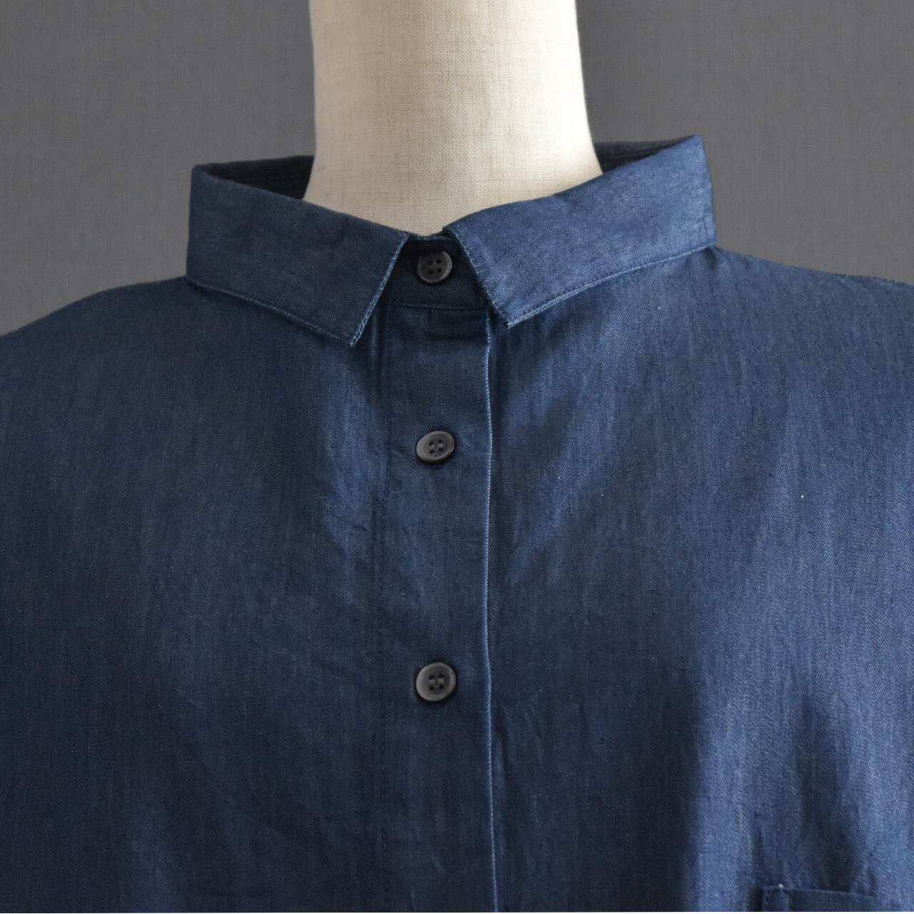 軽やかな着心地が魅力の、ライトオンスデニムを使用したドルマンブラウス。
