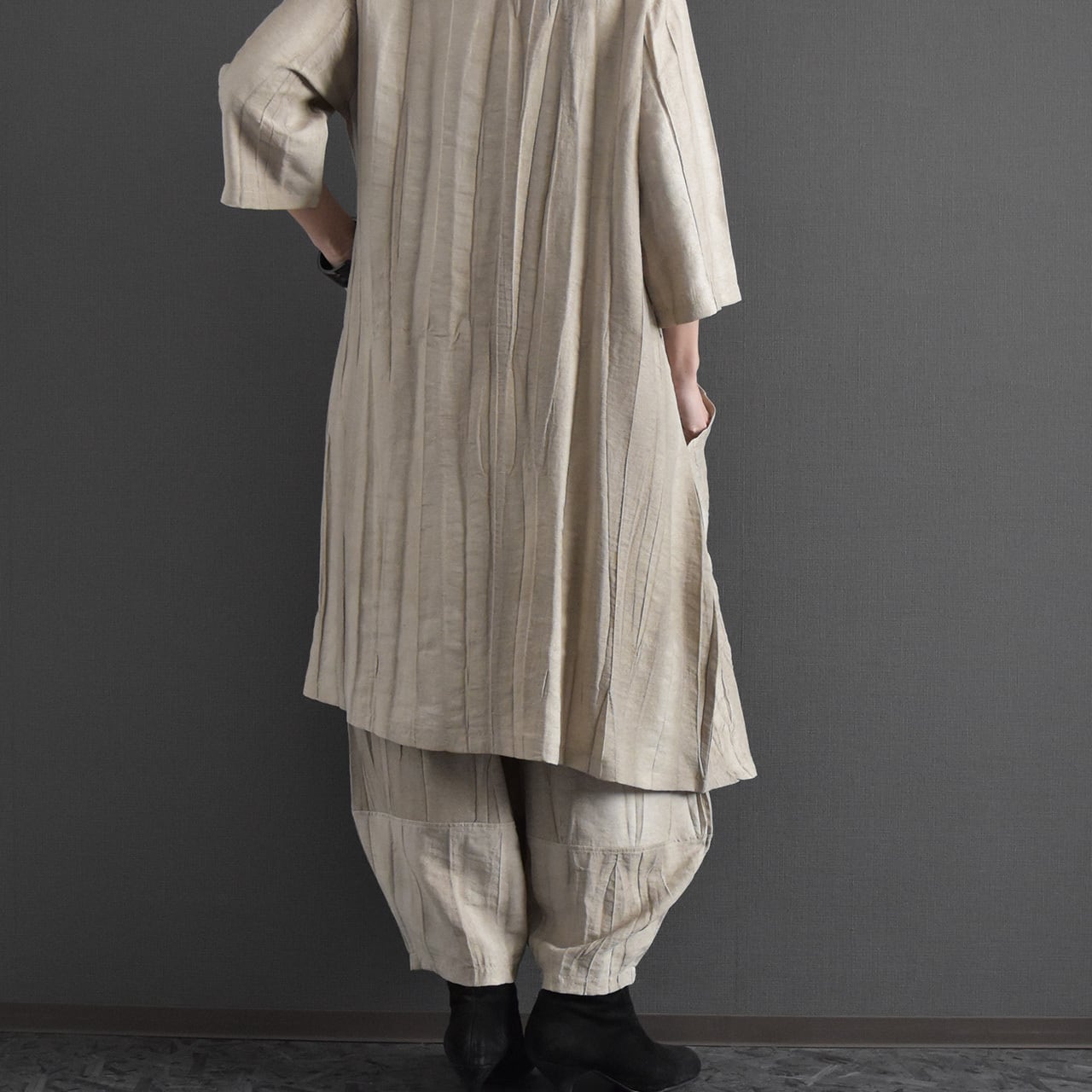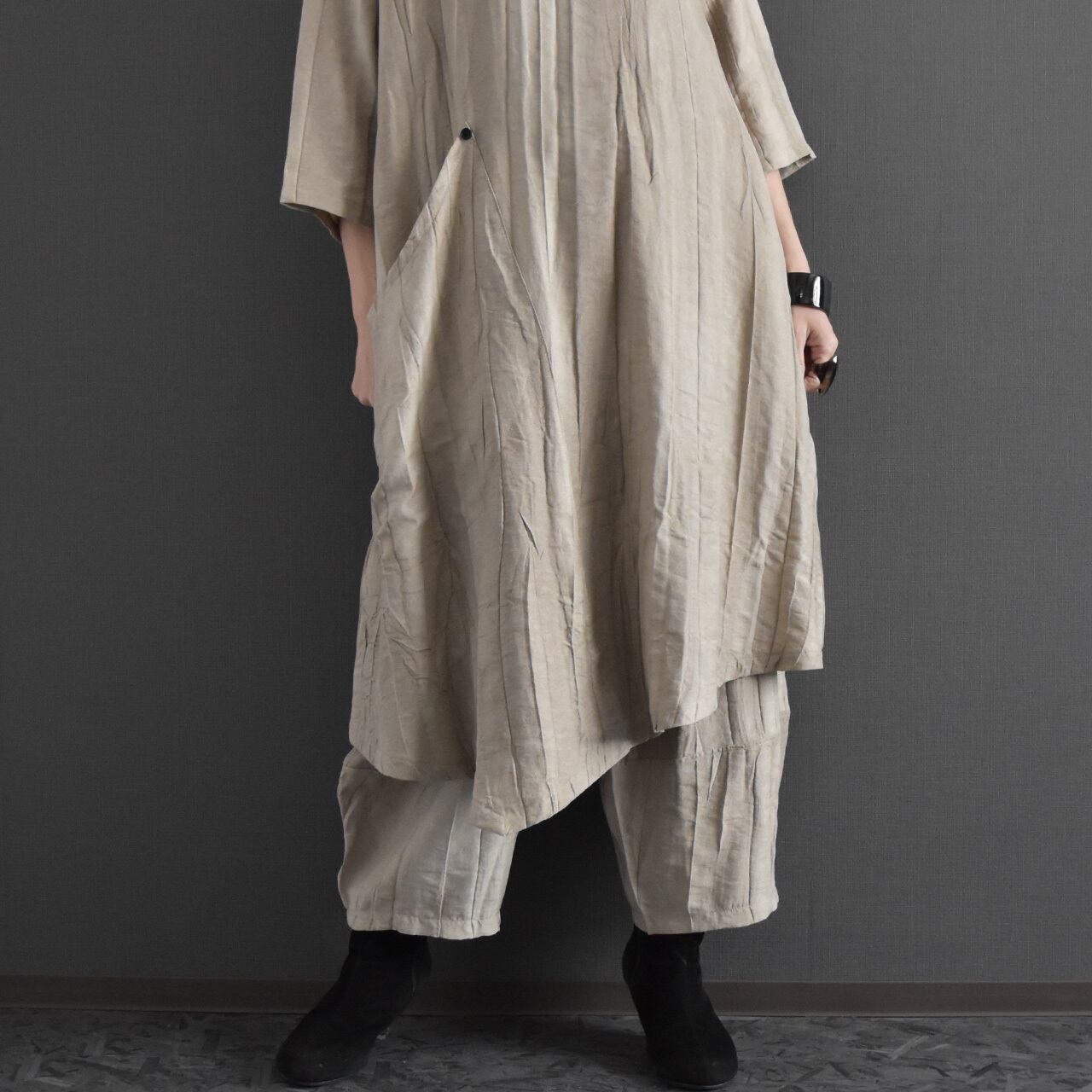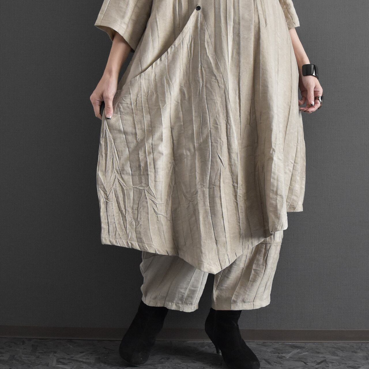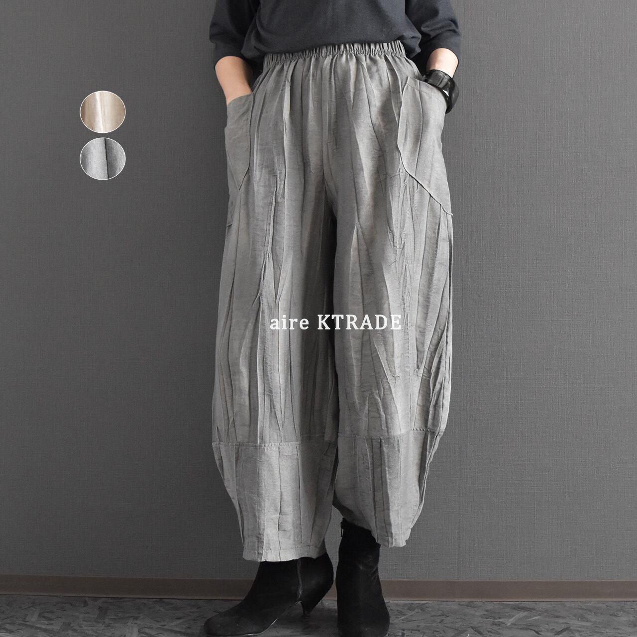 麻混絞り染めイージーパンツ 2026春 セットアップ可能