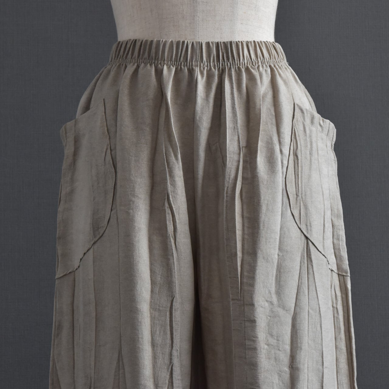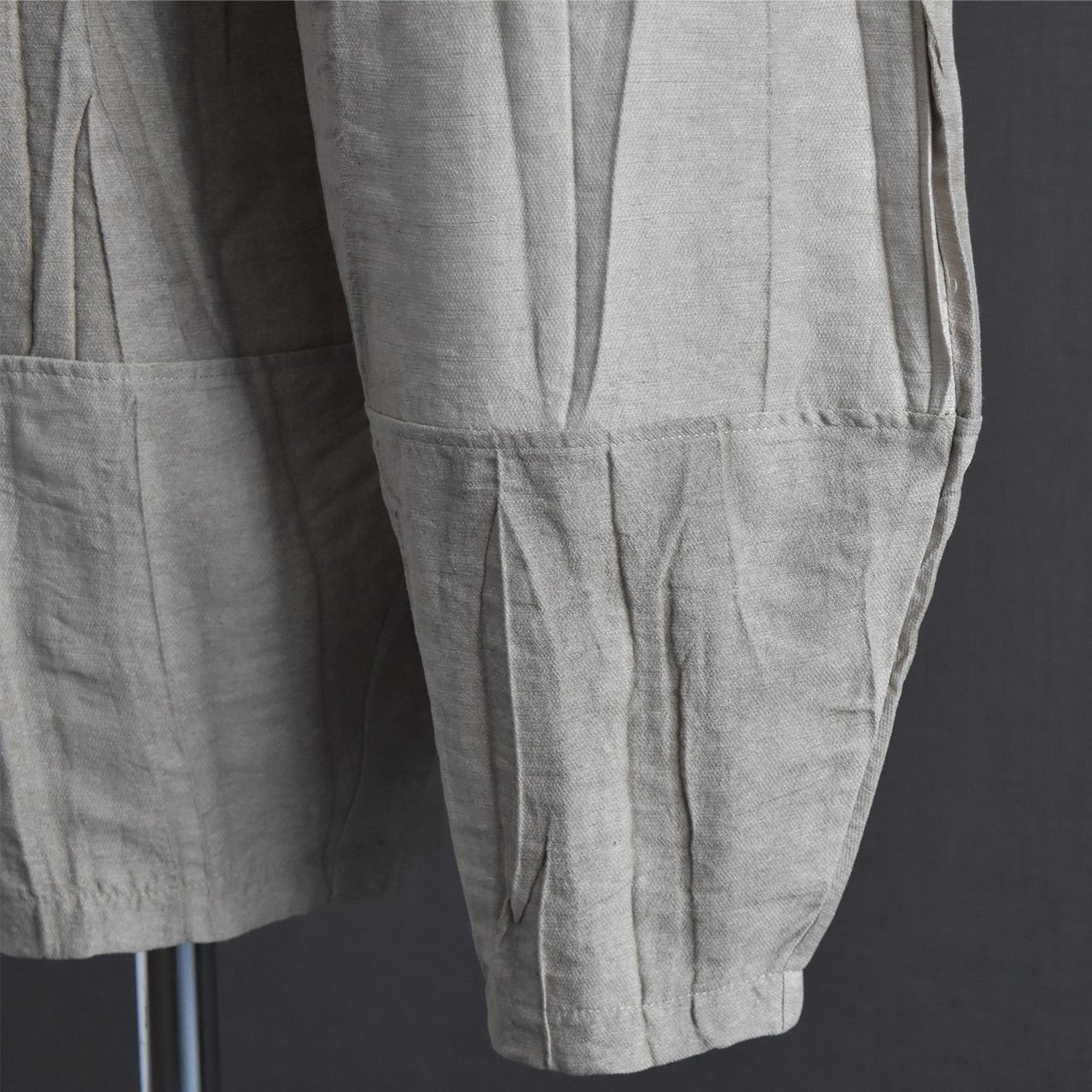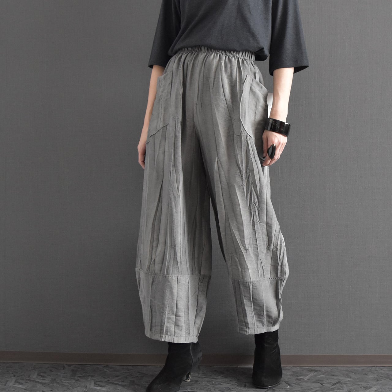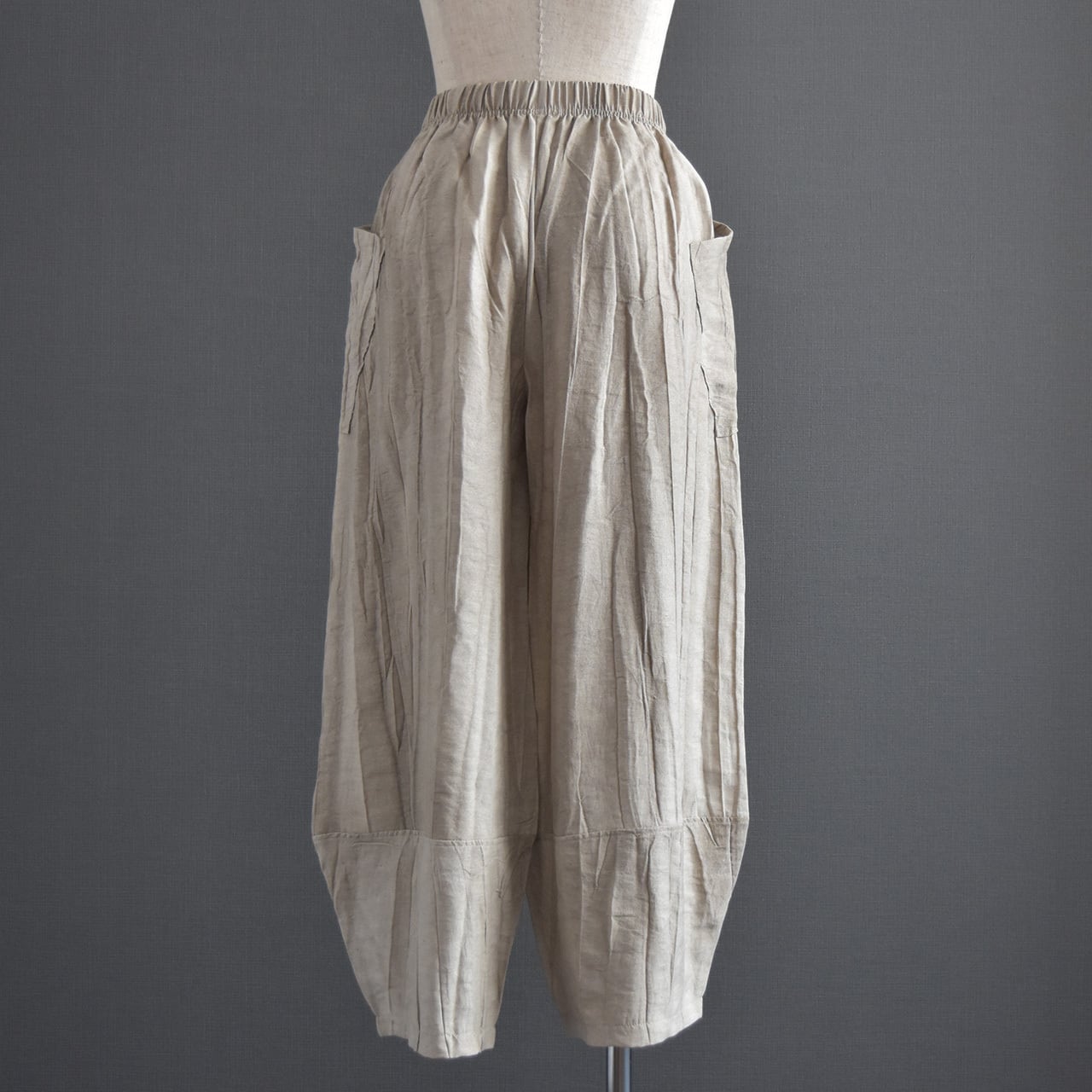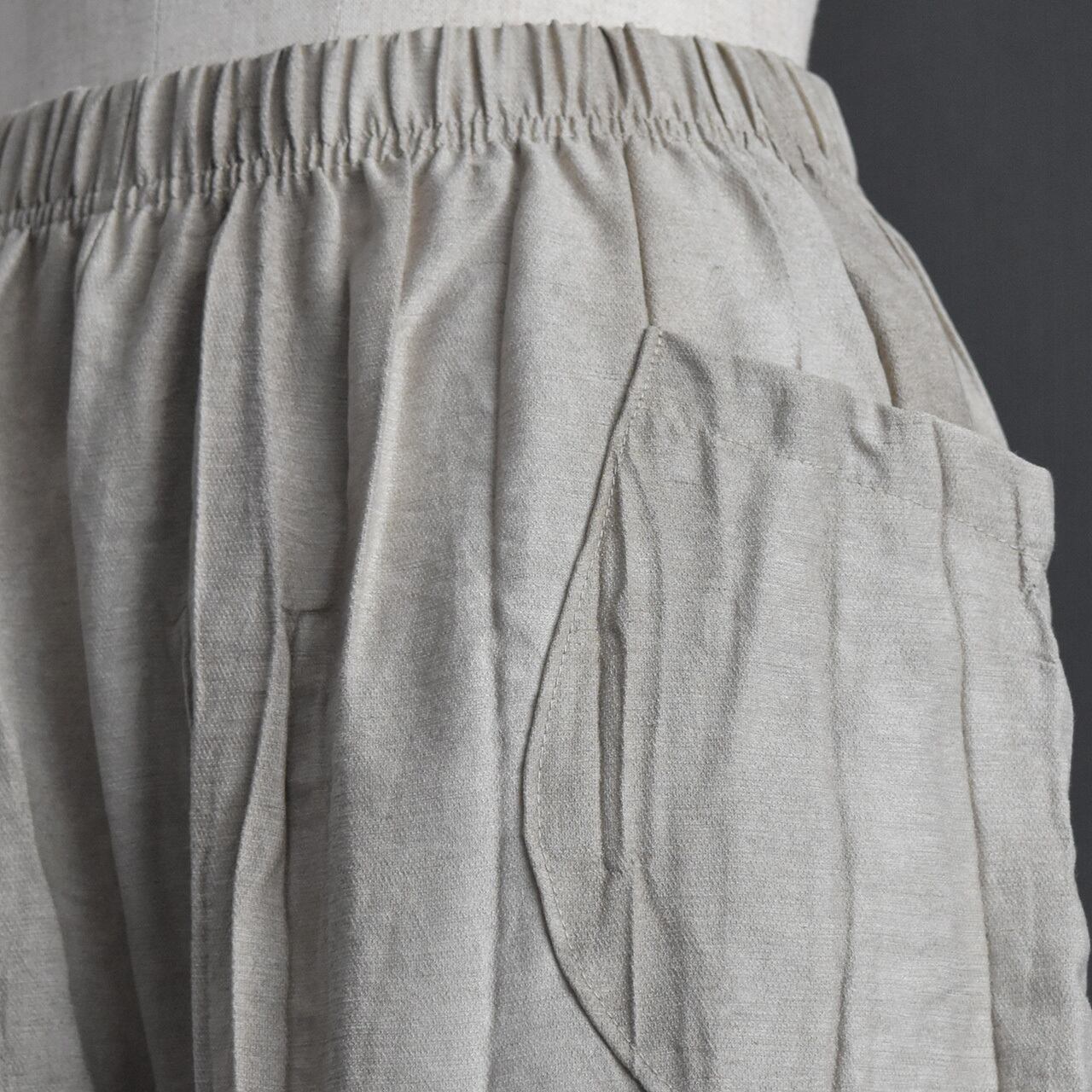 絞り染めを施した、表情のある麻混素材のイージーパンツです。