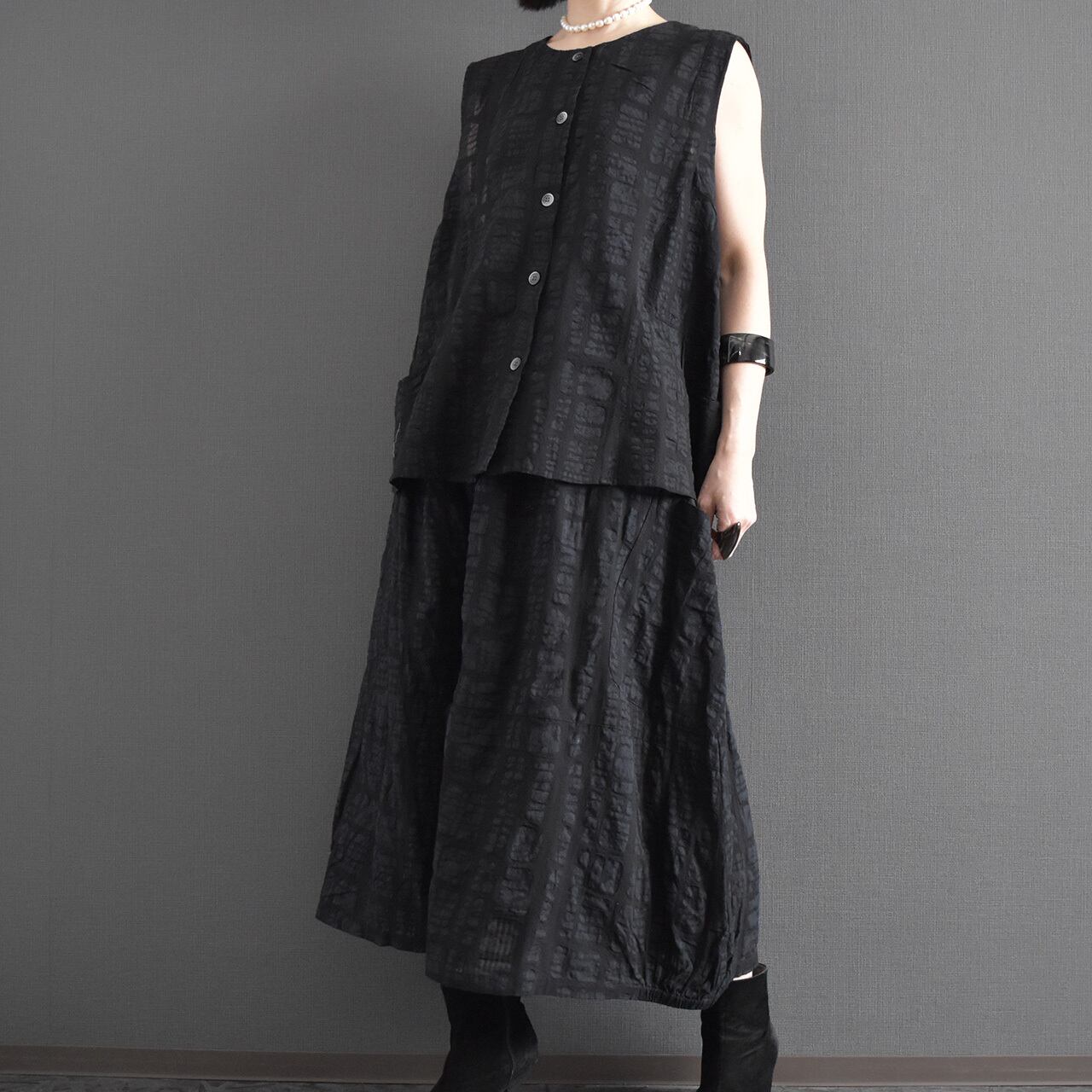 ブロックモチーフエンボス加工裏地付きスカート 2026春 セットアップ可能