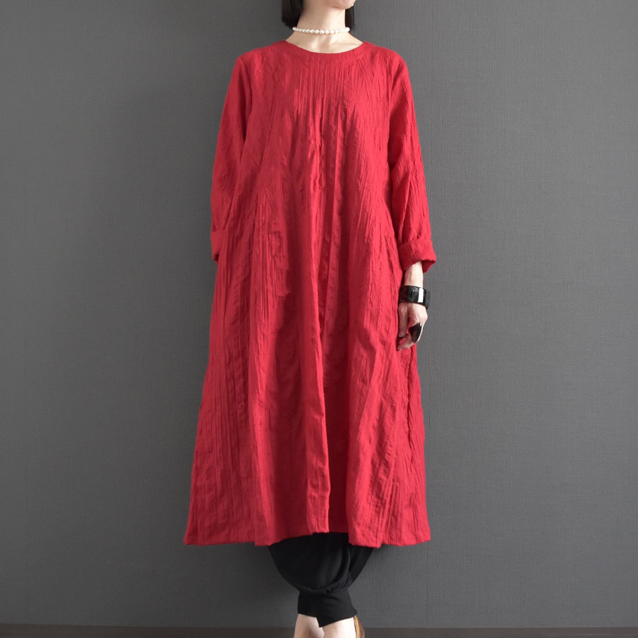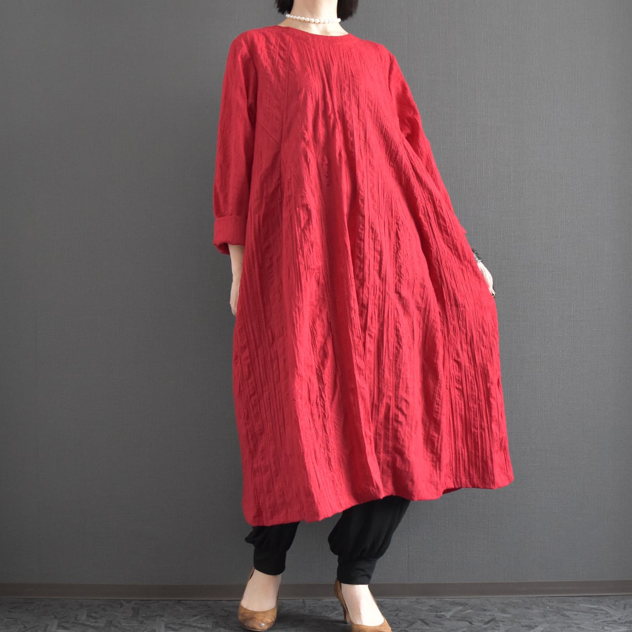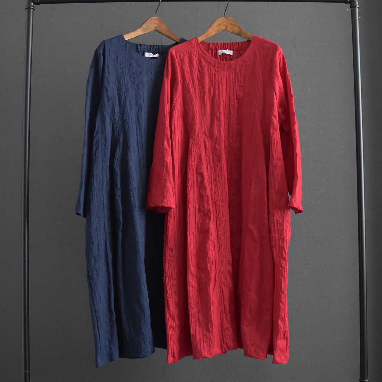軽やかな着心地が魅力の、綿ポリワッシャー素材ワンピース。