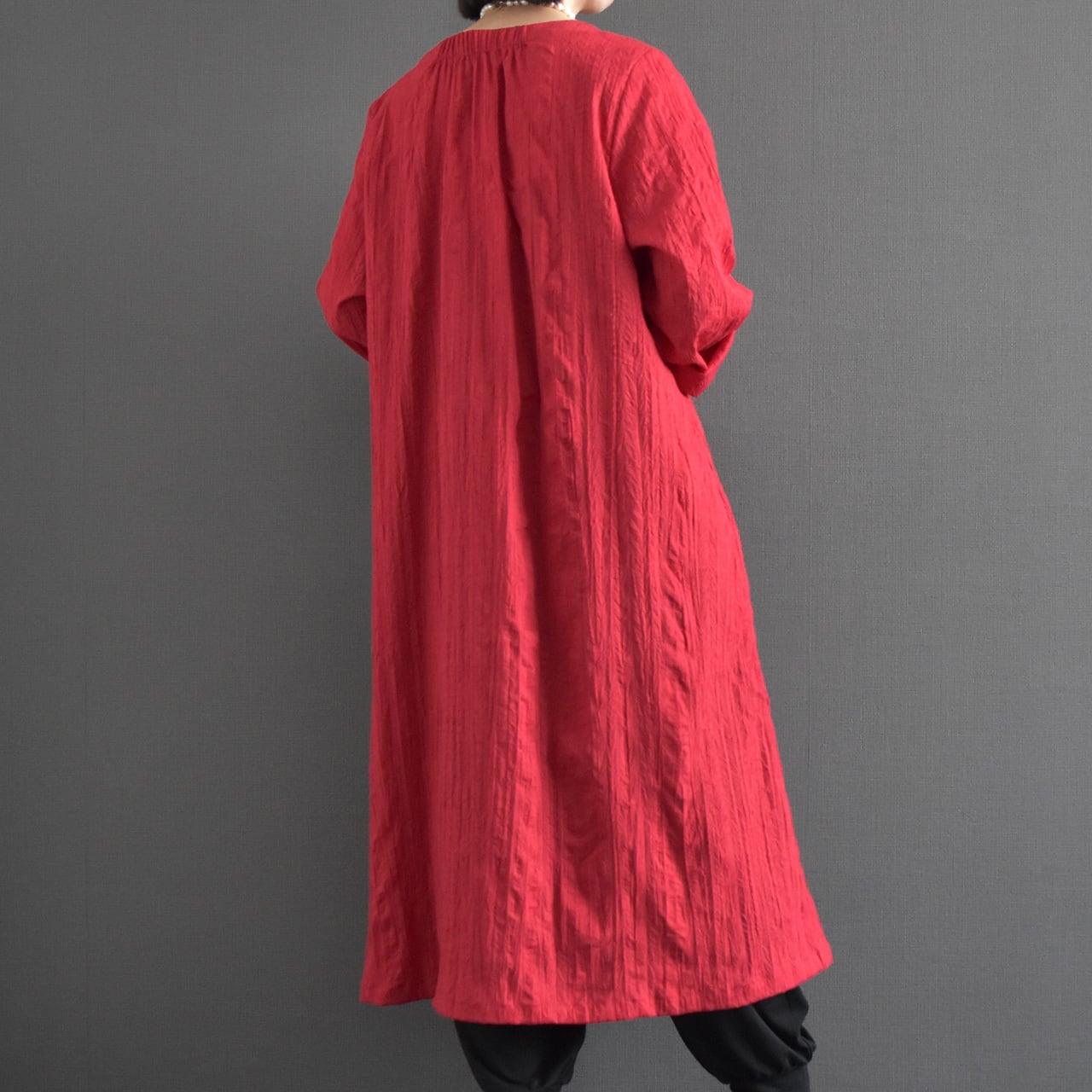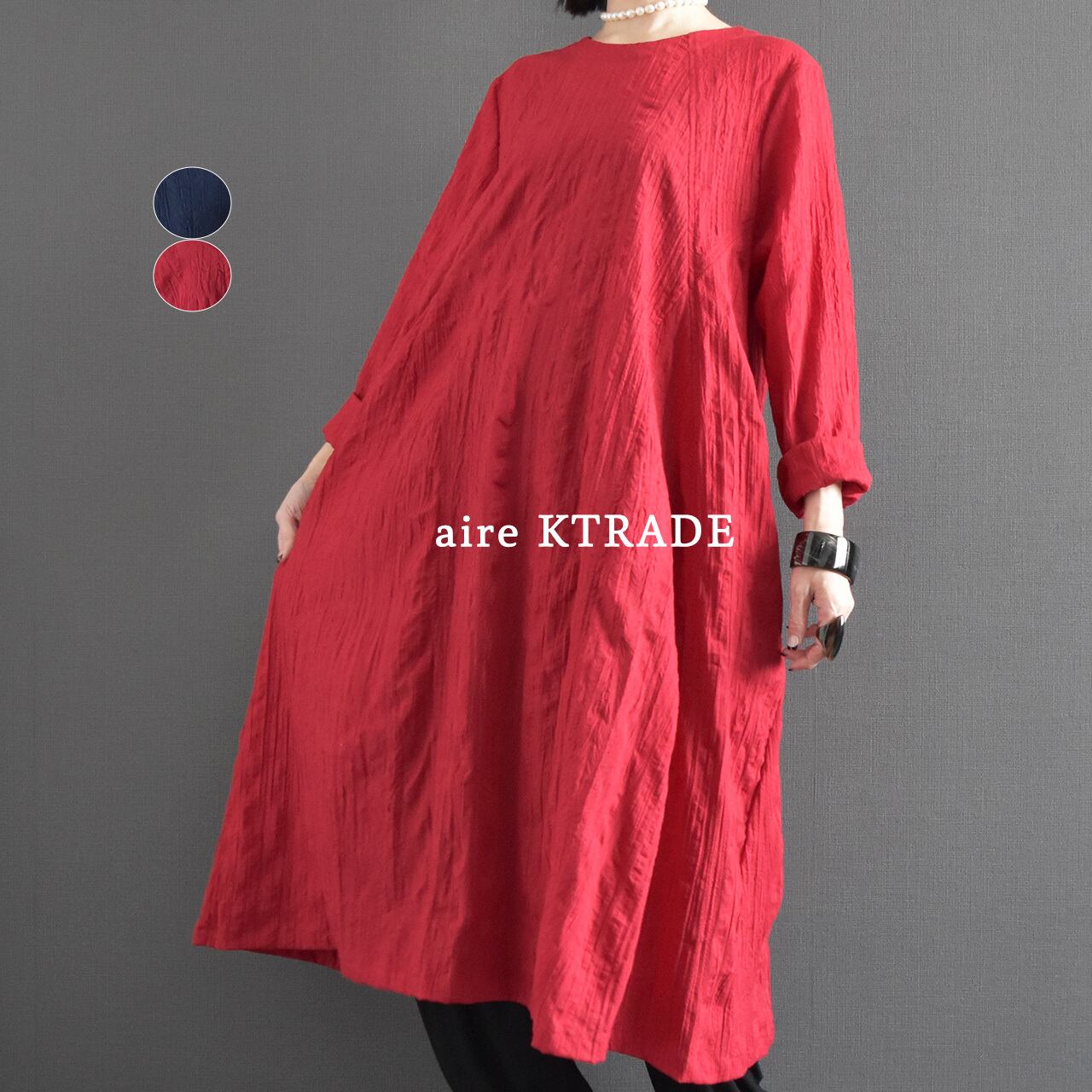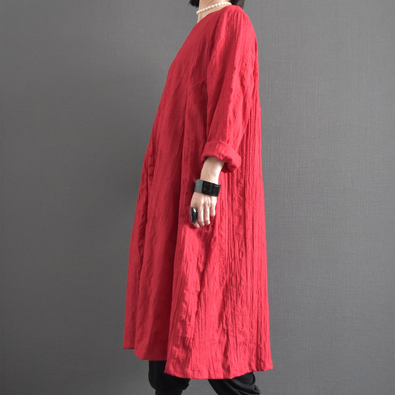 軽やかな着心地が魅力の、綿ポリワッシャー素材ワンピース。