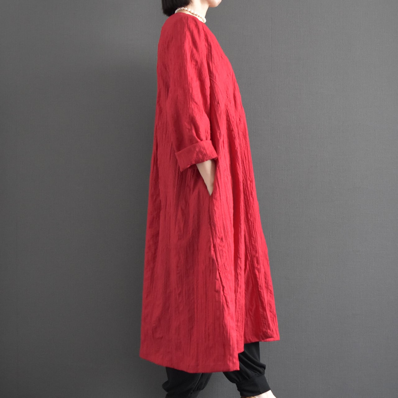 裏地:なし/ポケット:あり/生地の厚さ:しわ加工の薄手布帛/透け感:なし/伸縮性:なし