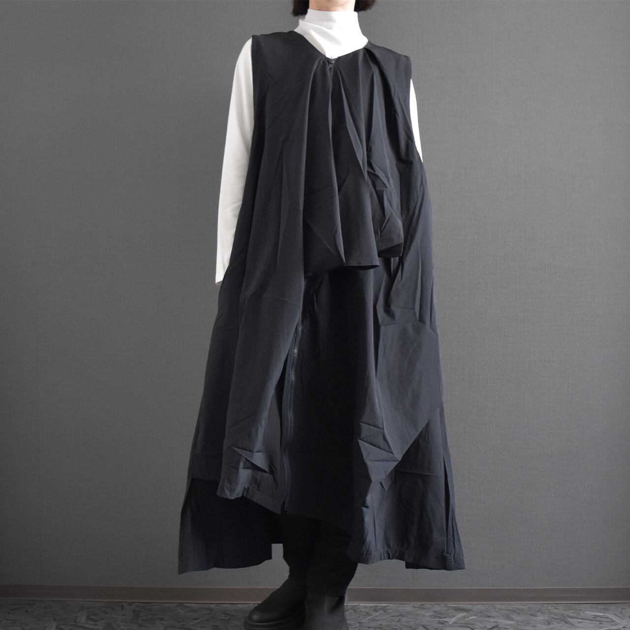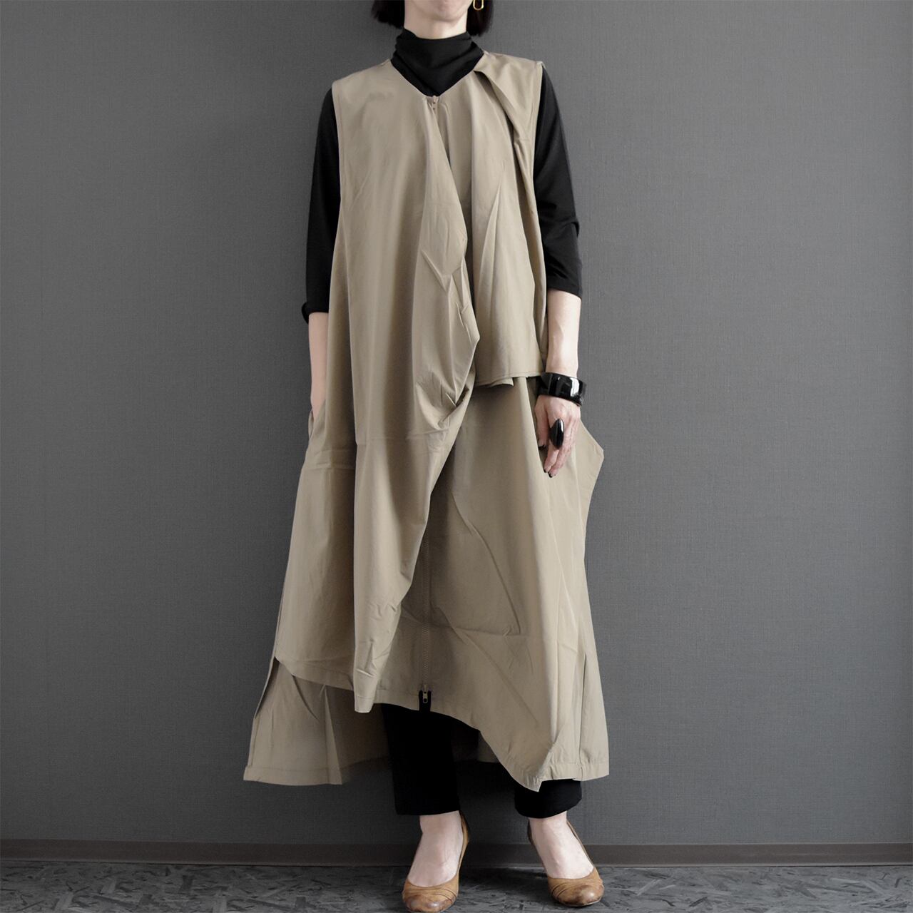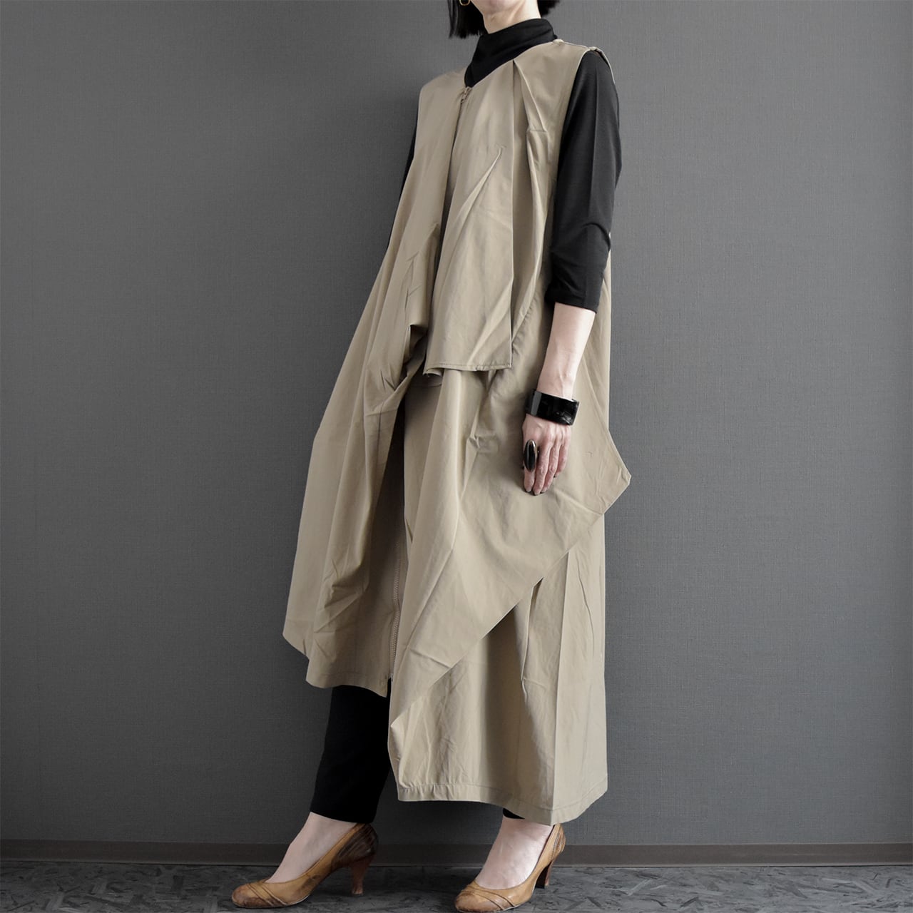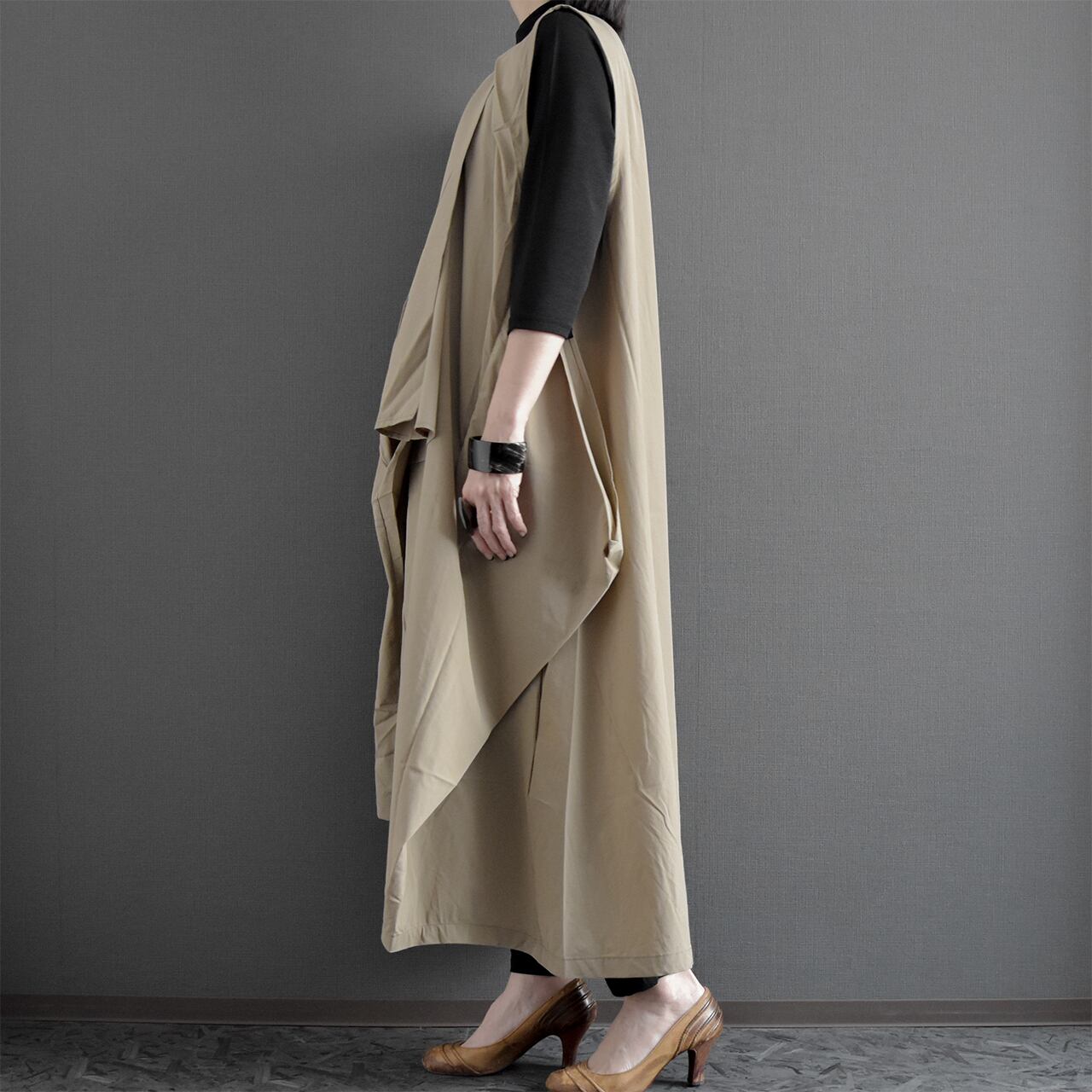 動くたびに美しいドレープが生まれる、存在感のあるロングベストワンピース。