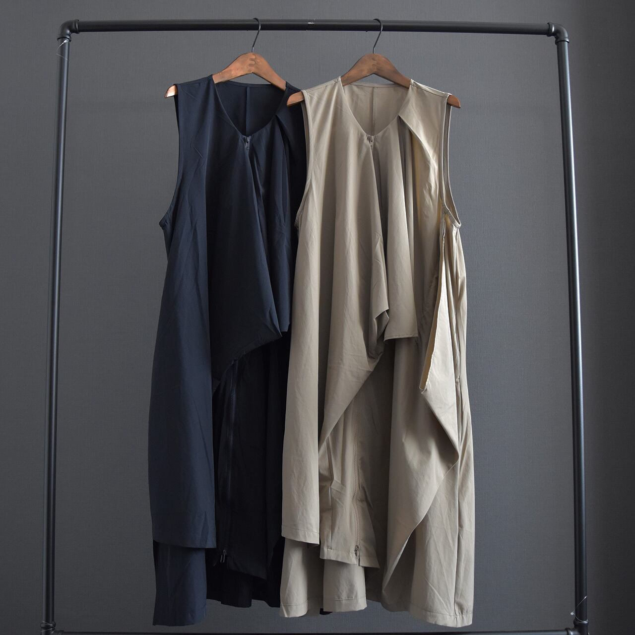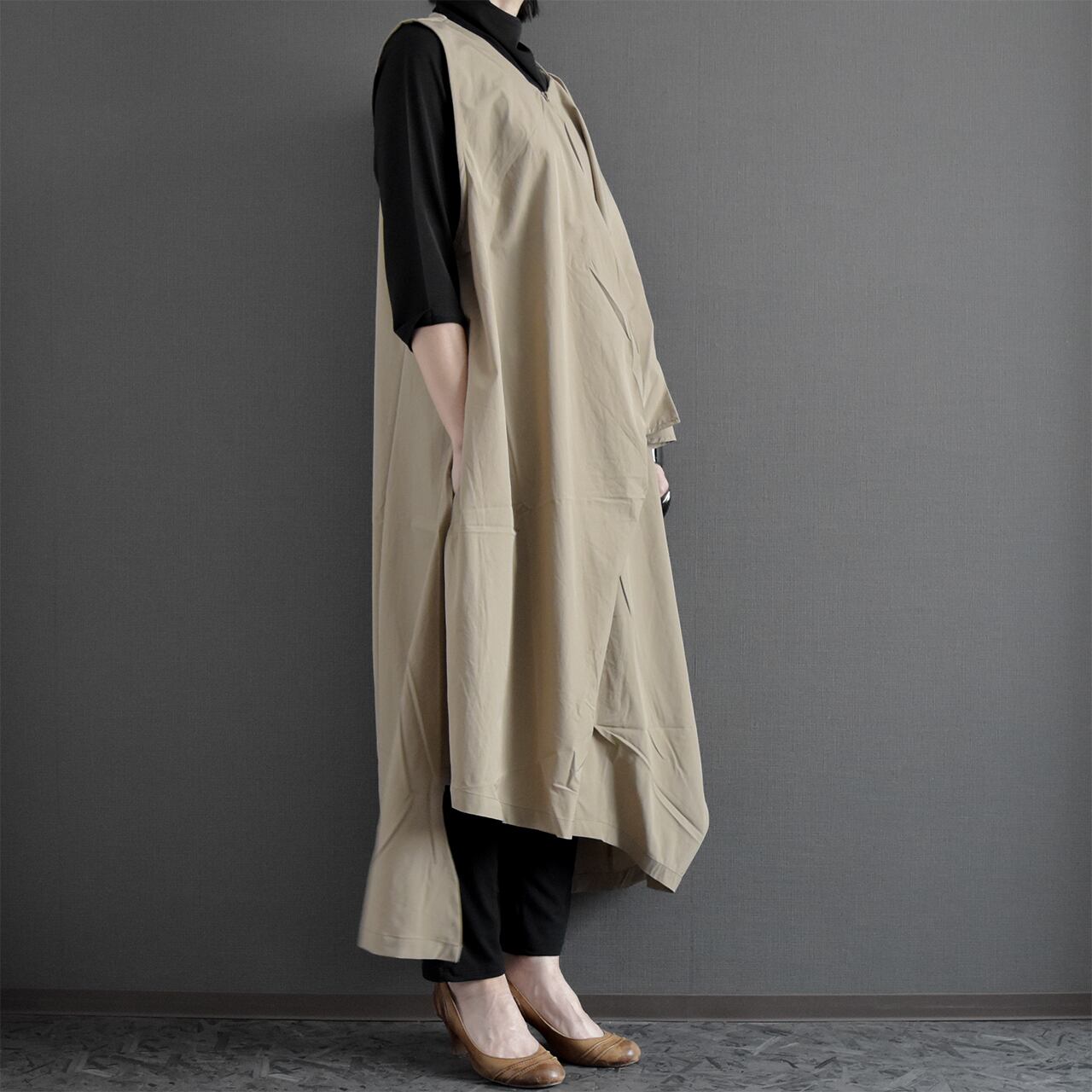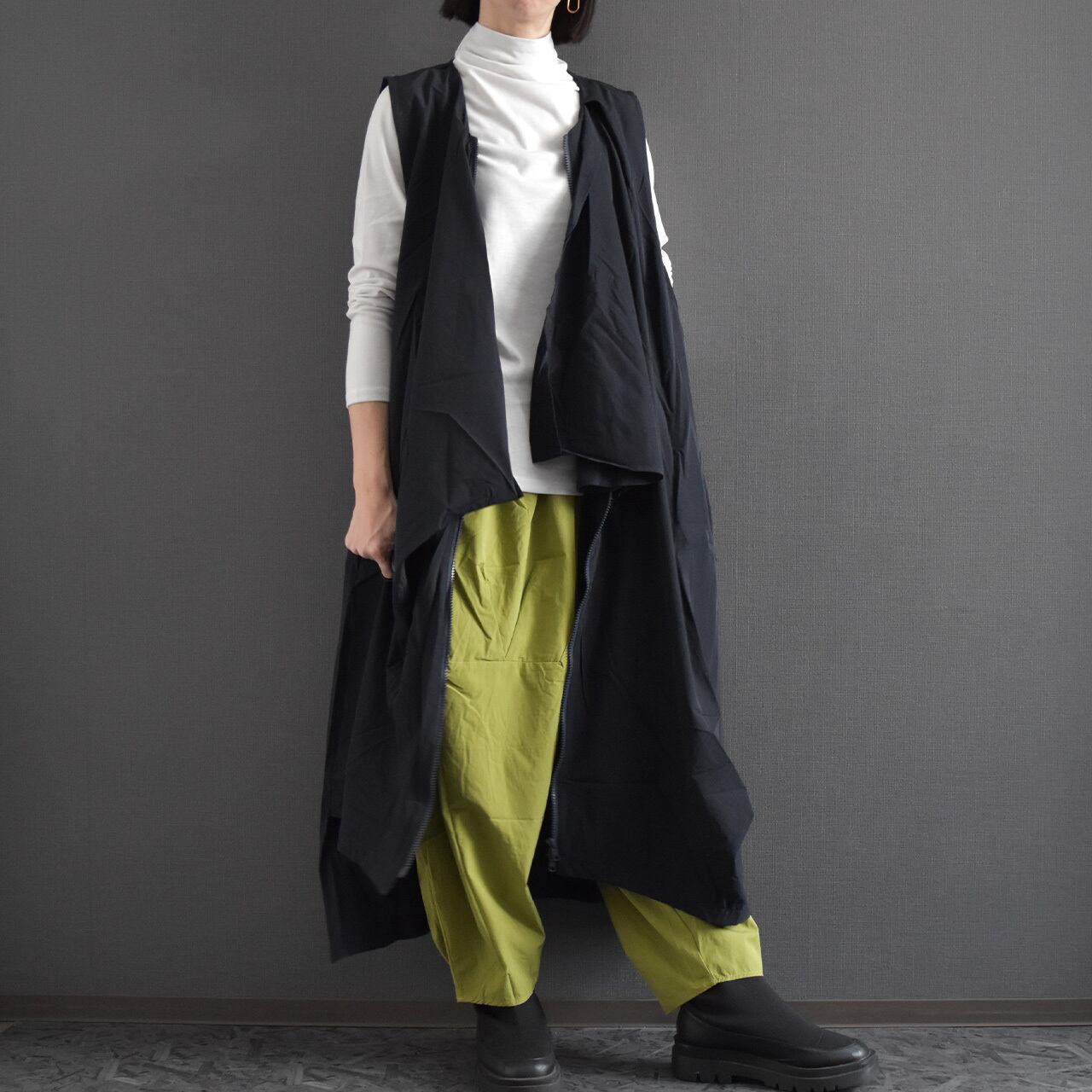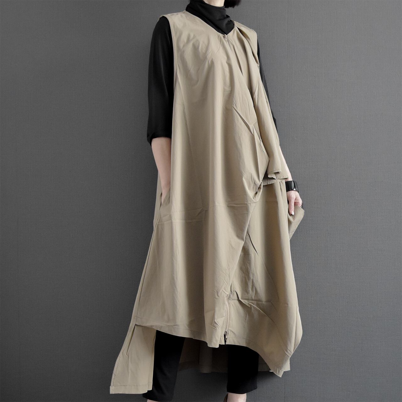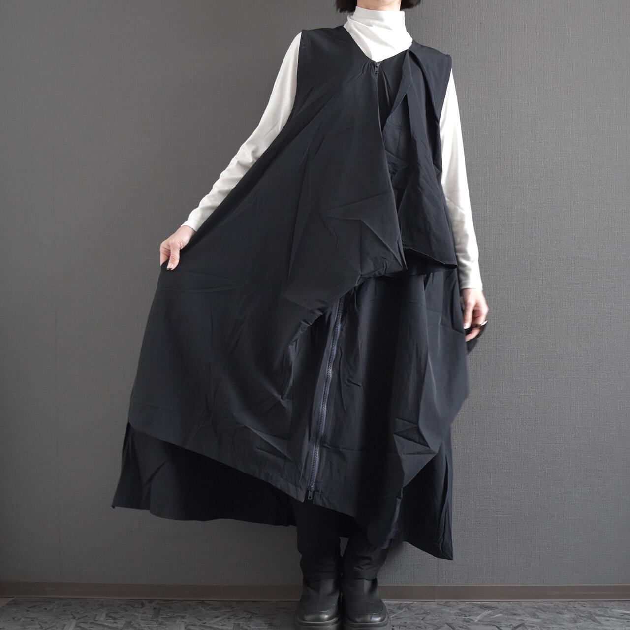 動くたびに美しいドレープが生まれる、存在感のあるロングベストワンピース。