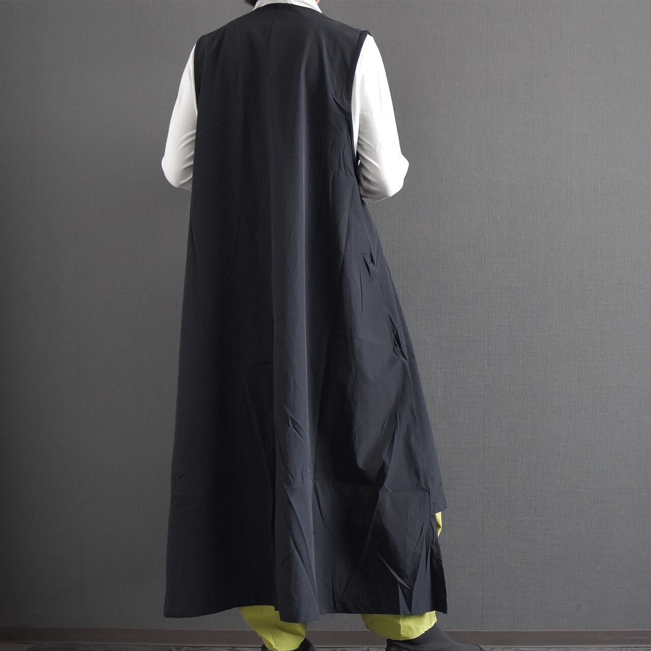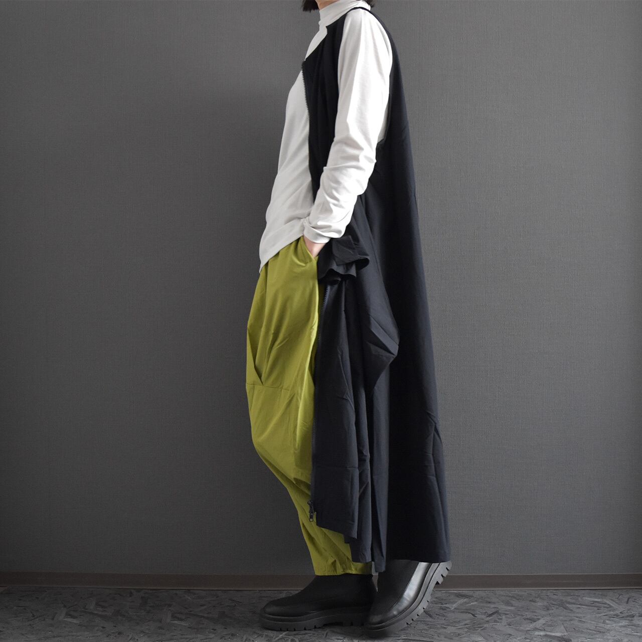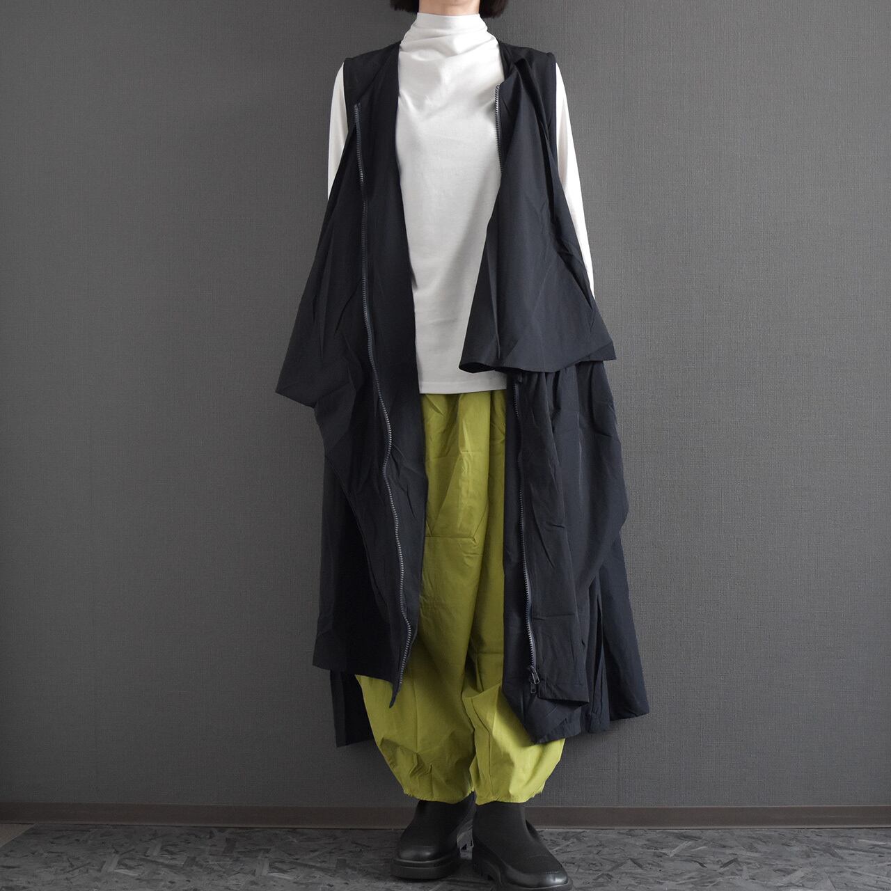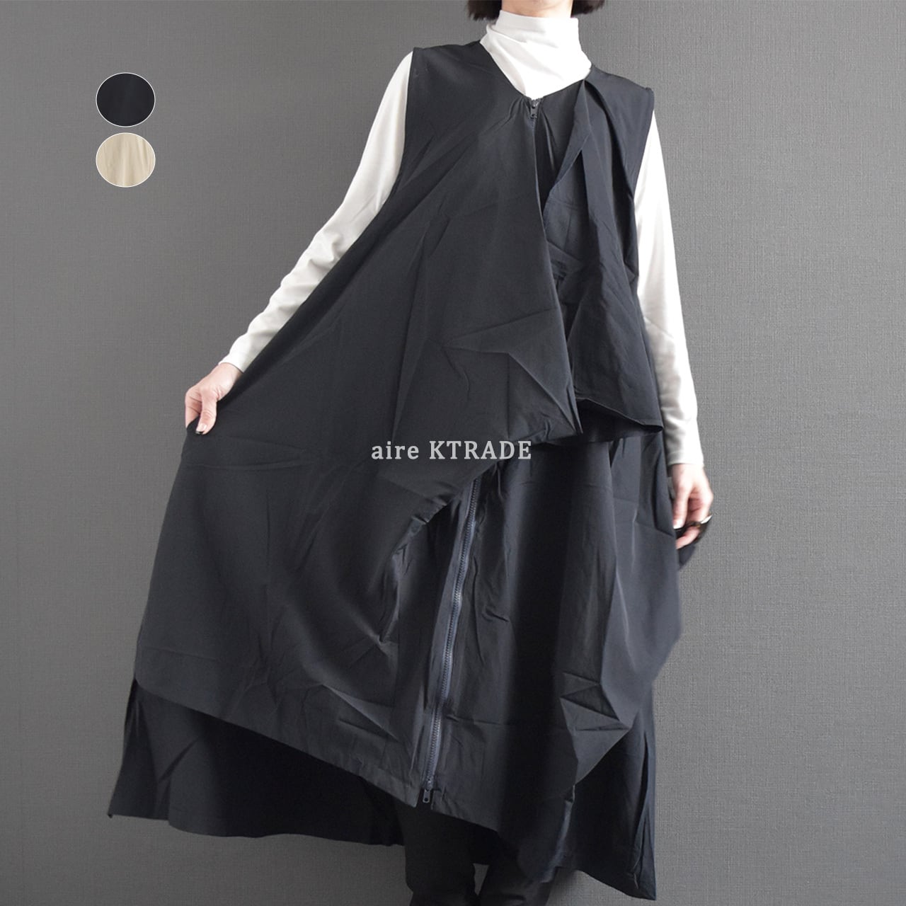 動くたびに美しいドレープが生まれる、存在感のあるロングベストワンピース。