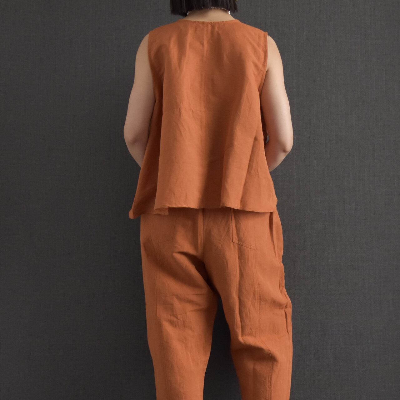リネンコットンのナチュラルな風合いが魅力の2WAYベスト。