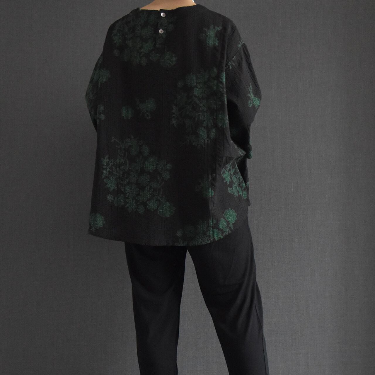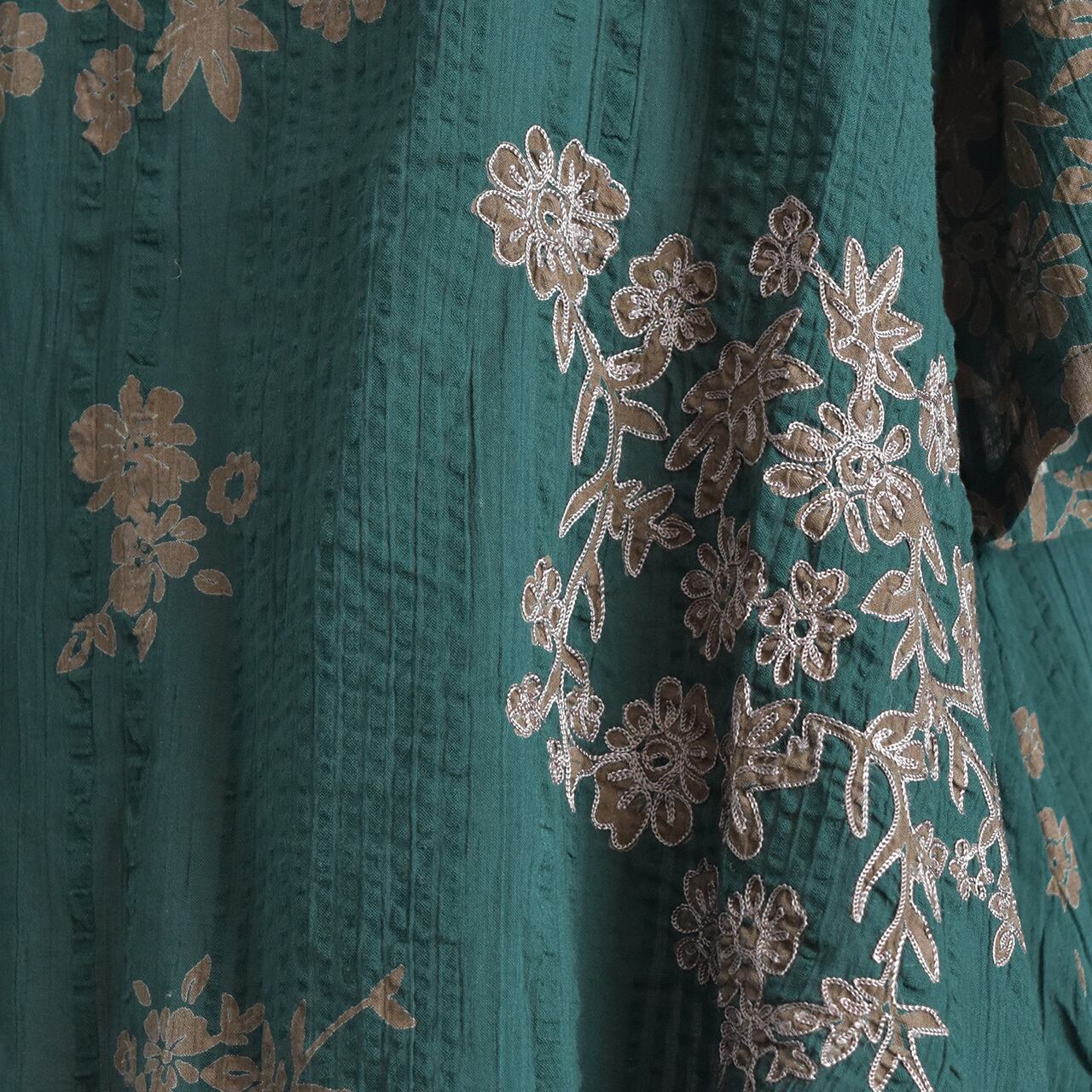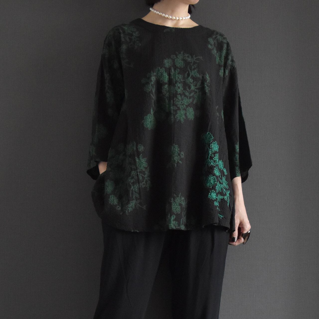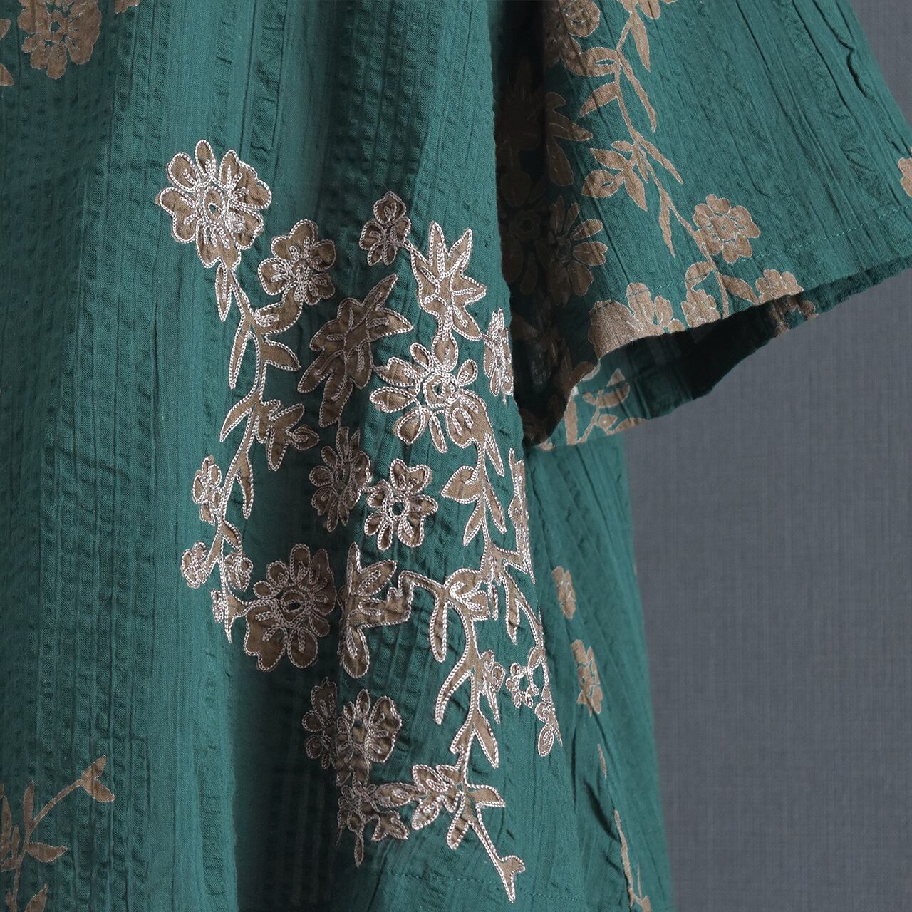 部分的に刺繍を入れることで、プリントだけでは出せない立体感と上品な表情をプラス。