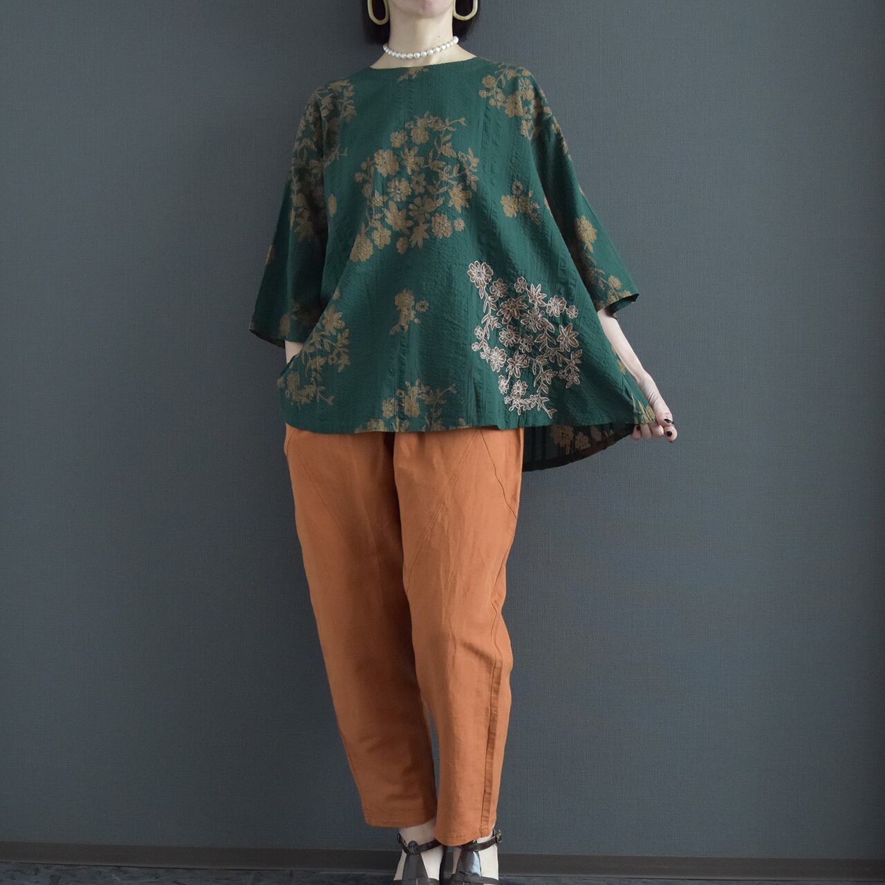 ゆったりとしたシルエットで体のラインを拾いにくく、リラックス感のある着こなしが楽しめます。