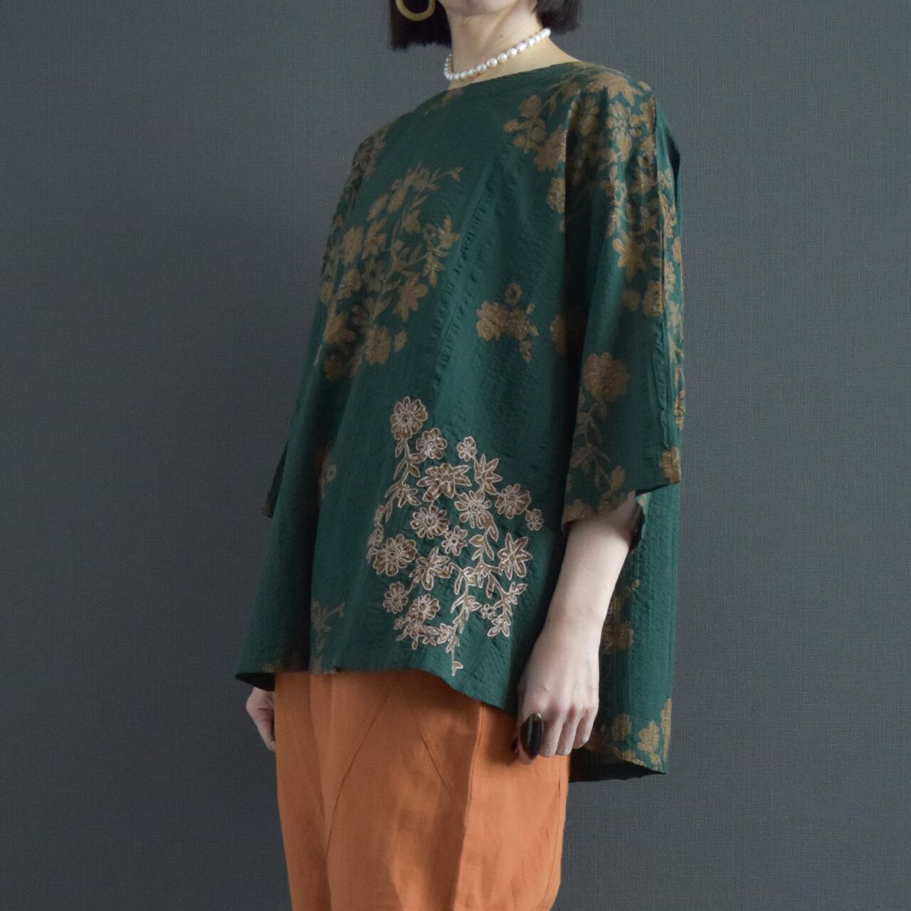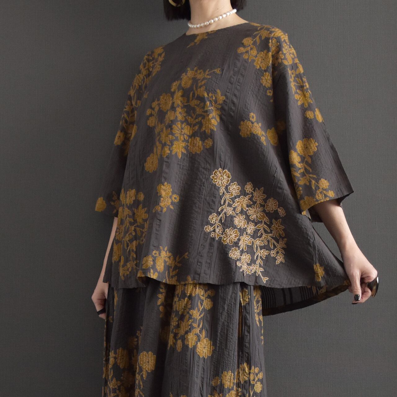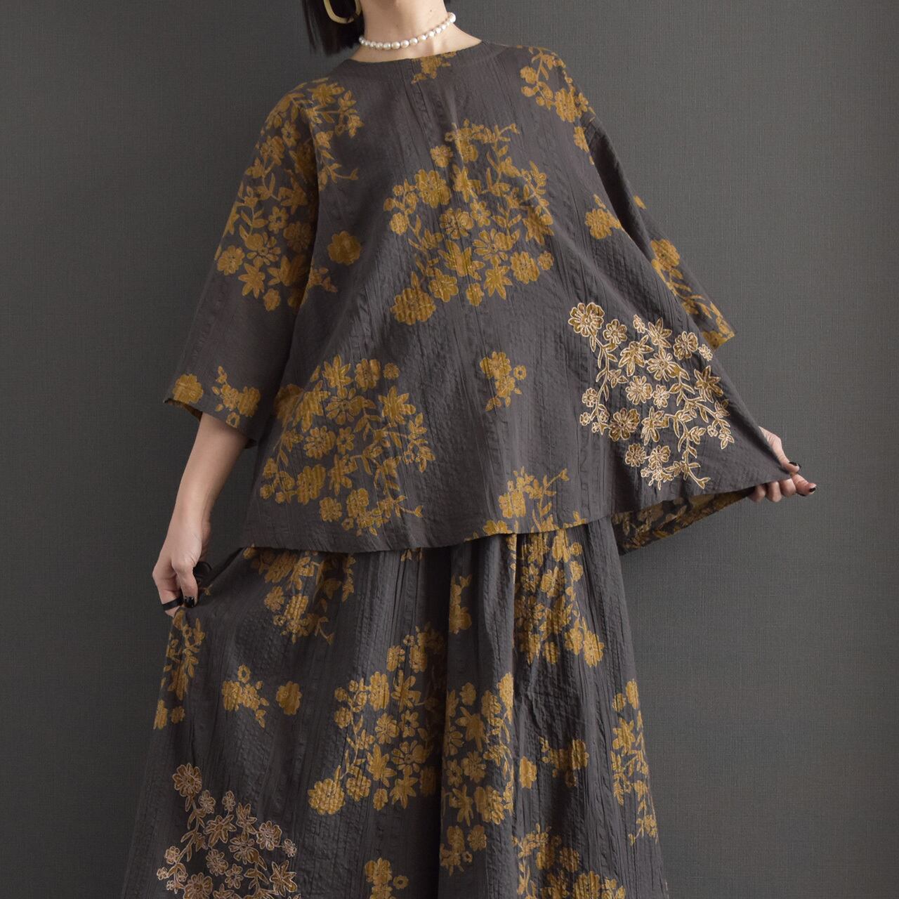 シアサッカー花柄ポイント刺繍ブラウス 2026夏